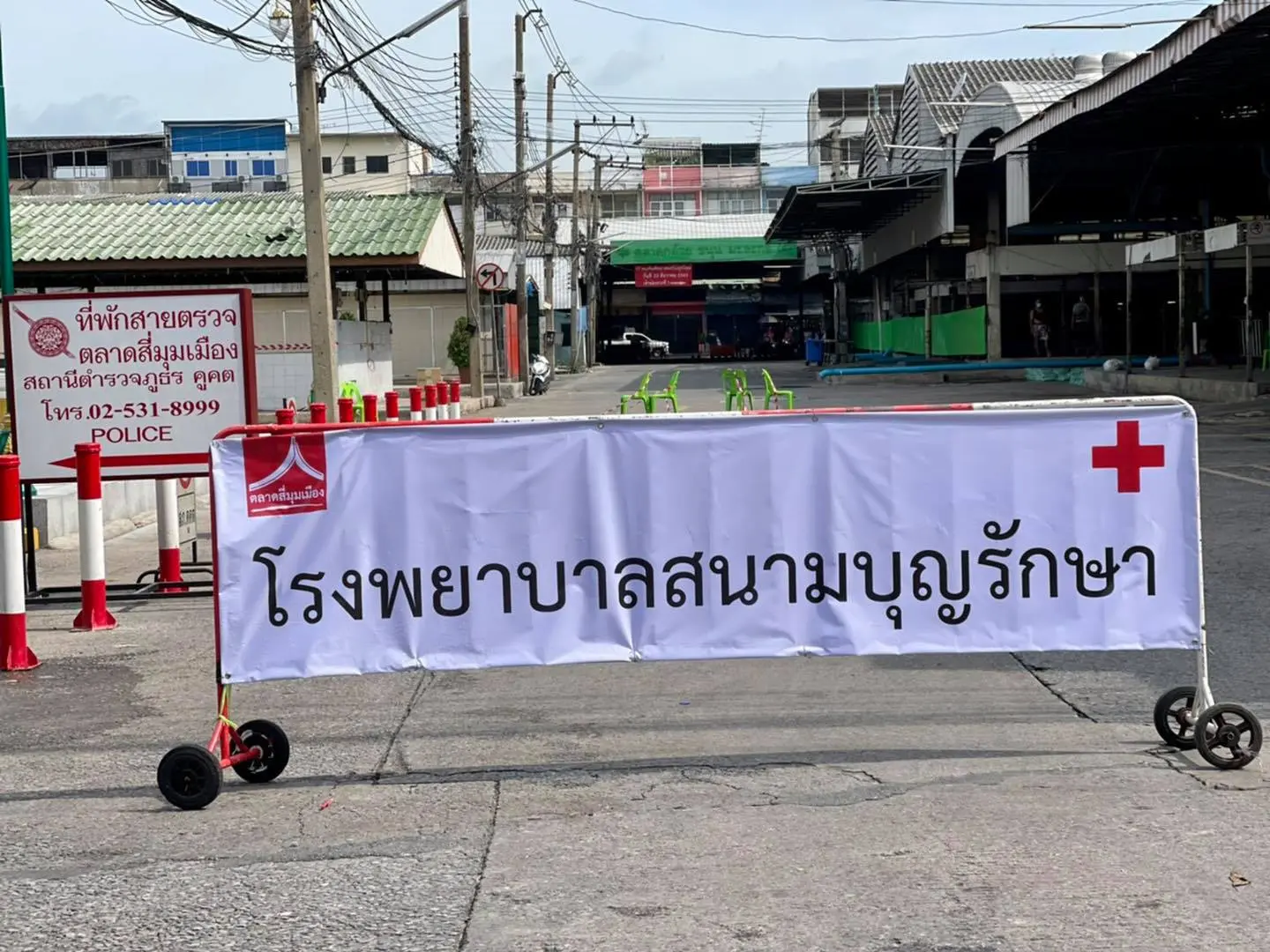 กรณี เพจ ตลาดสี่มุมเมือง ได้โพสต์ภาพและข้อความ ในการใช้ใช้ ตลาดสี่มุมเมือง ทำ โรงพยาบาลสนามบุญรักษา ที่ถูกจัดจั้งและสนับสนุนของสาธารณสุขจังหวัดปทุมธานี โดยมีข้อความระบุว่า