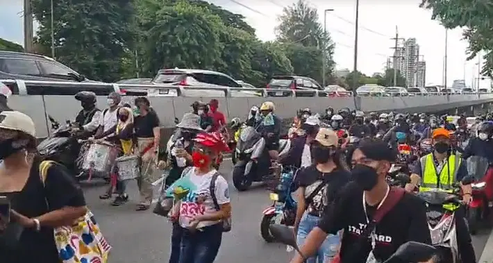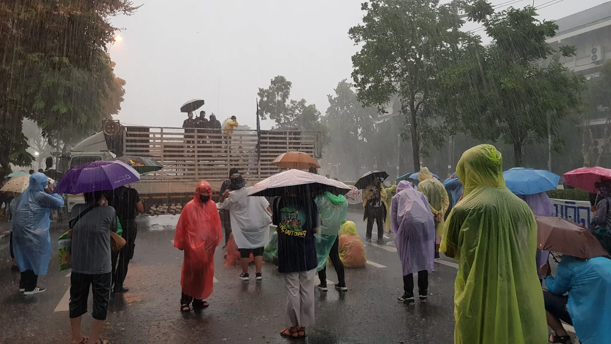 โดยวันนี้เองคุณแม่สุ ก็ไปร่วมเป็นกำลังใจและคอยดูแลเรื่องการป้องกันโควิดให้กับ นายพริษฐ์ อยู่ไม่ห่าง ขณะเดียวกันก็มีเหล่าผู้ชุมนุมขึ้นปราศรัย โดยกล่าวถึงเรื่องของการทำงานตลอด 7 ปีที่ผ่านมา ซึ่งอยู่ๆฝนก็กระหน่ำตกลงมาขณะที่ผู้ปราศรัยคนแรกพูดได้ไม่นานนัก แต่เหล่าผู้ชุมนุมก็ยังไม่ย่อท้อ ยังเดินหน้าปราศรัยต่อไป โดยยืนยันว่าฟ้าดินไม่มีทางมาหยุดได้ ด้านร้านค้าที่มาเปิดท้ายยังคงตั้งขายรอเวลาฝนหยุดตก
