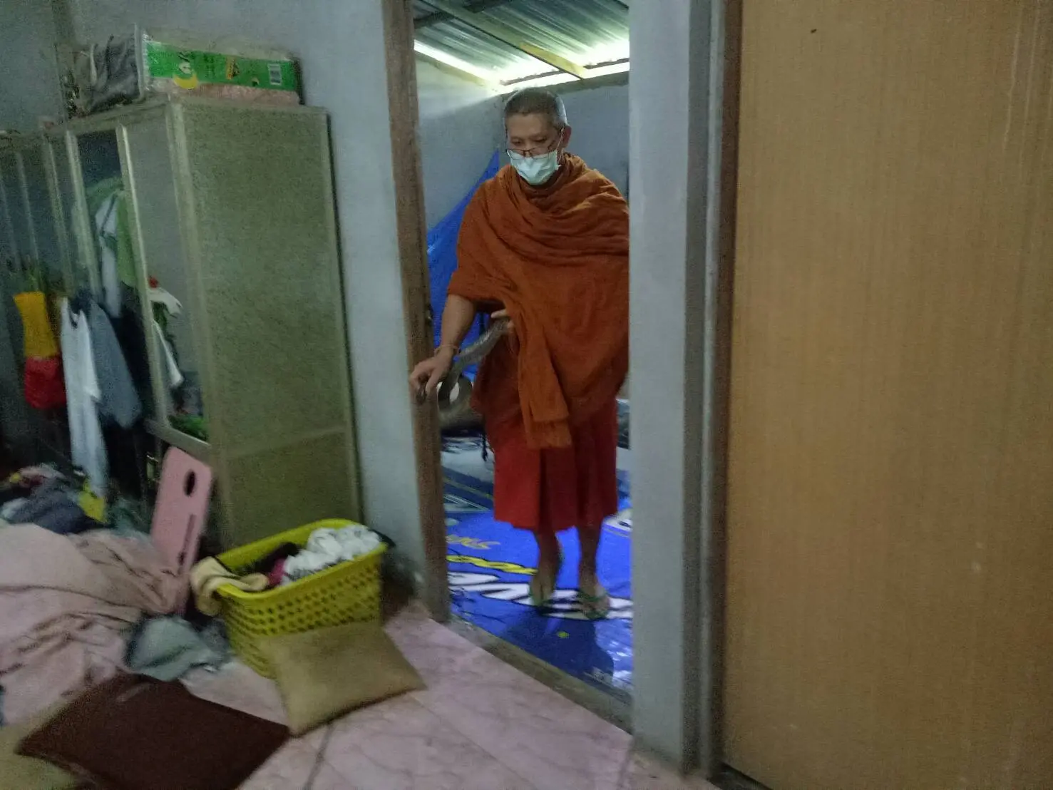 เมื่อวันที่ 11 ต.ค. 64 ข่าวช่อง 3 รายงานว่า อาสาสมัครสมาคมกู้ภัยจังหวัดเลย จุดอำเภอเมือง รับแจ้งจากประชาชน ขอความช่วยเหลือมีงูเข้าไปภายในบ้าน ที่บ้านน้ำภู ตำบลเมือง อำเภอเมืองเลย โดยมี พระรุ่งธรรม พระลูกวัดศรีอภัยวัน ตำบลนาอ้อ อำเภอเมืองเลย เดินทางพร้อมอุปกรณ์ร่วมปฏิบัติการด้วย โดยเหตุการณืเกิดขึ้นเมื่อวานนี้ 10 ตุลาคม 2564 เวลาประมาณ 15:00 น.