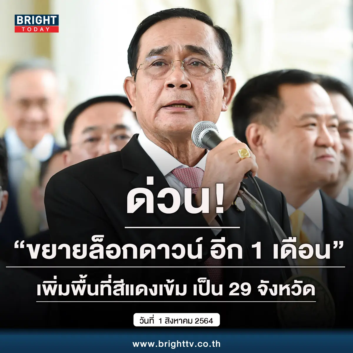 “ขยายล็อกดาวน์” อีก 1 เดือนถึงสิ้นเดือนสิงหาคมนี้ เพิ่มขยายพื้นที่แดงเข้ม เป็น 29 จังหวัด ปรับ ร้านอาหารในห้างเปิดขายแบบเดลิเวอรี่ได้