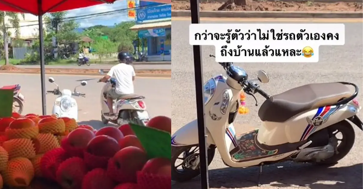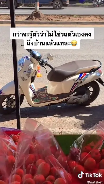 โดยผู้ใช้ TikTok natsket ซึ่งเป็นพ่อค้าผลไม้ได้เผยแพร่คลิปเหตุการณ์ที่เกิดขึ้น ขณะมีลูกค้ามาซื้อผลไม้ที่ร้านของตนเมื่อซื้อเสร็จแล้วกลับขี่รถมอเตอร์ไซค์ของตนกลับไป โดยที่ลูกค้าได้จอดรถของตัวเองทิ้งไว้ที่ร้าน ซึ่งคาดว่ารถคงจะมีสัมผัสที่เหมือนกันมากจนลูกค้าแยกไม่ออก หรือ อาจจะเพราะว่ากำลังใจลอยอยู่ก็เป็นได้