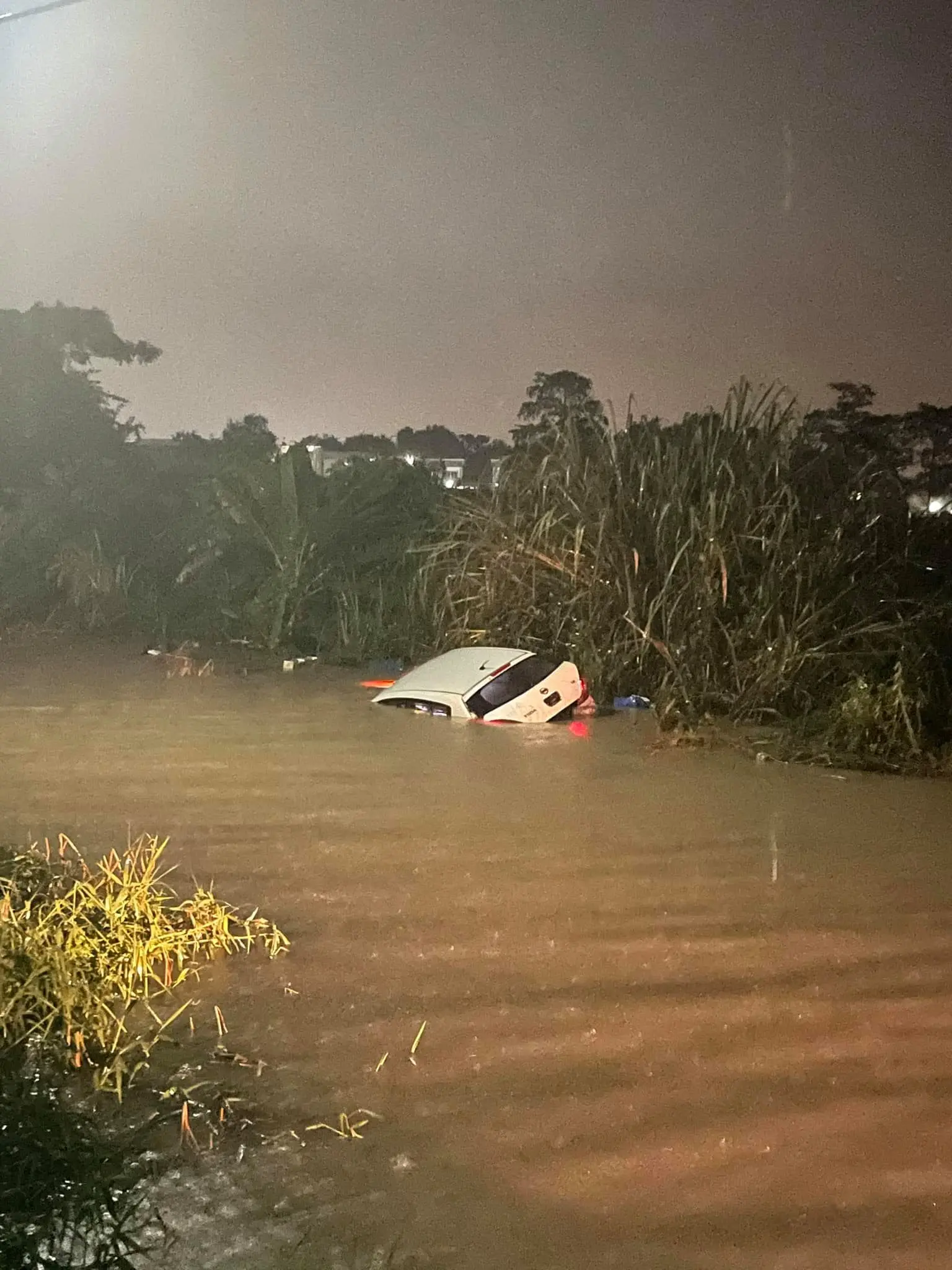 “#น้ำท่วมจันทบุรี ตอนน้ำเข้ารถแล้วติดอยู่ข้างใน กรี๊ดแทบตาย กว่าจะออกจากรถได้ ขับมาไม่คิดว่าจะท่วมสูงเรื่อย ๆ ขนาดนี้ .. ตอนรถดับ รถถูกพัดลอยไปเรื่อย ๆ น้ำเข้ารถทีละนิด #จนมันมาถึงอก ร้องไห้ไม่ไหว รถจะซ่อมยังไง ของมีค่าในรถจะยังไง ขอบคุณพี่กู้ภัยที่มาช่วย ก่อนที่น้ำจะท่วมจมูกหนู (ตอนนั้นตะโกน ช่วยด้วยยย สุดเสียง) พรุ่งนี้ว่ากัน คืนนี้หาที่นอน + เอาของมีค่าออกจากรถให้มากที่สุด”