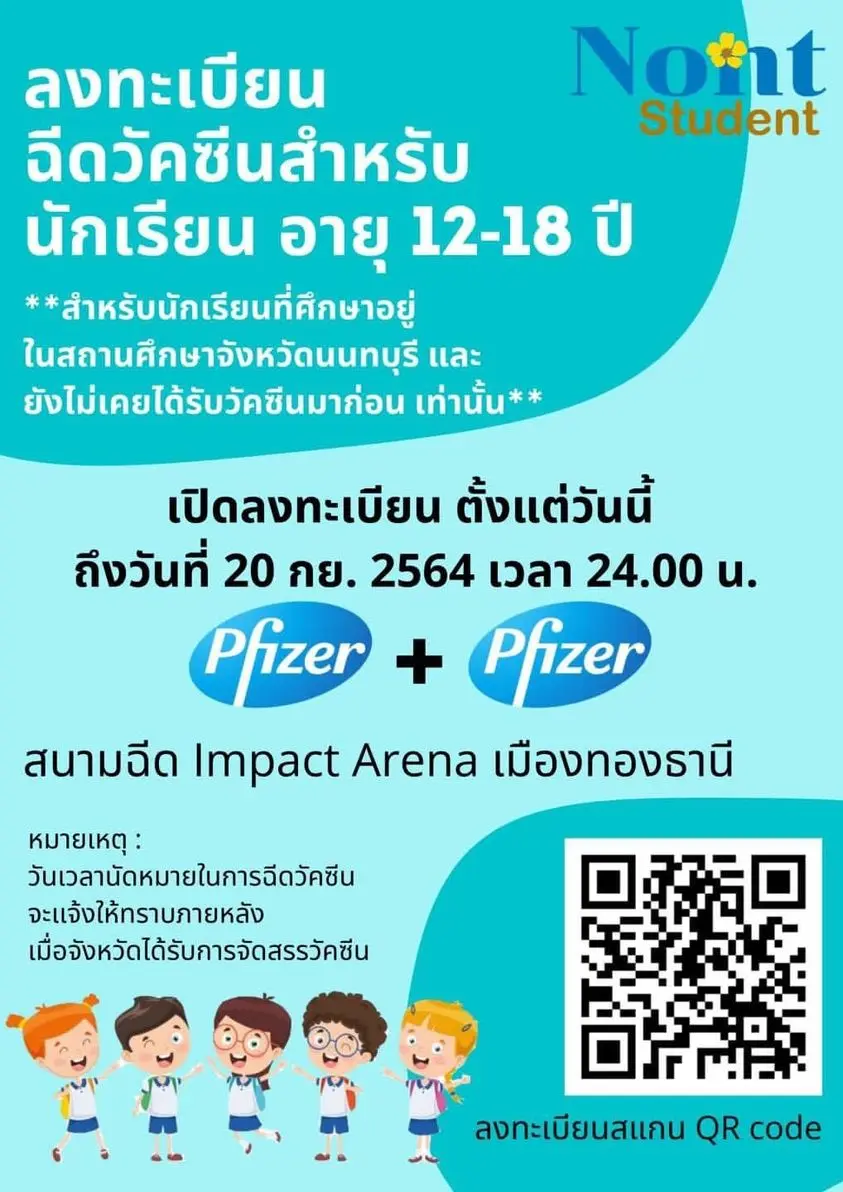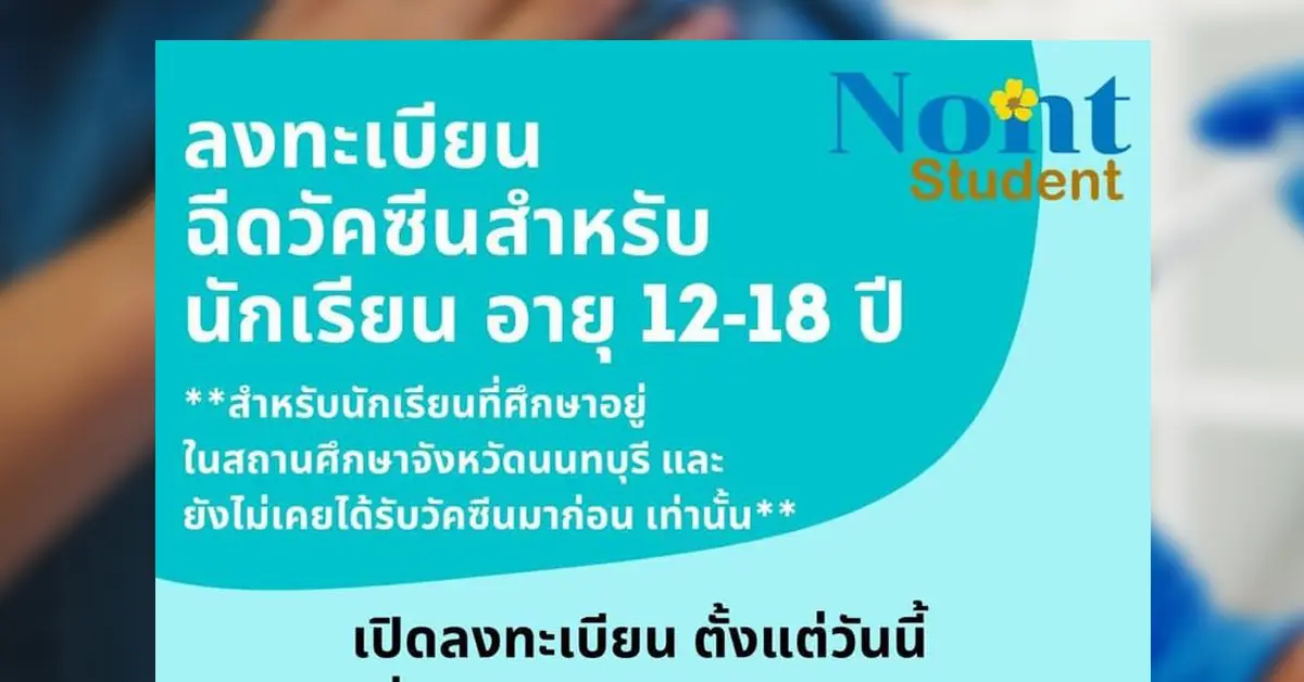 นนท์ Student เปิดลงทะเบียนวัคซีน ‘ไฟเซอร์‘ สำหรับนักเรียนอายุระหว่าง 12-18 ปี ที่อาศัยในจังหวัดนนทบุรี และไม่เคยรับวัคซีนเข็มแรกเท่านั้น