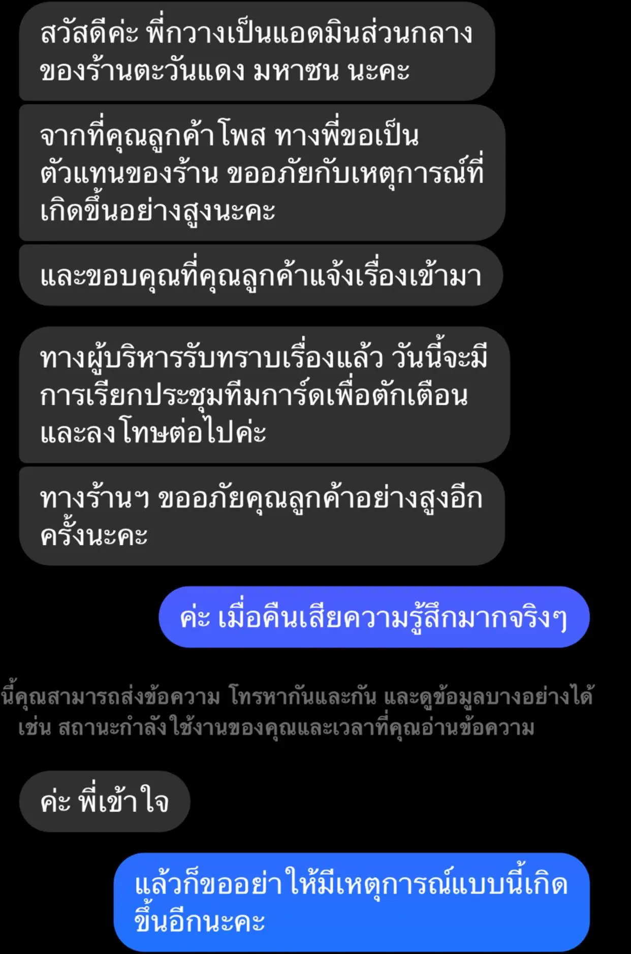 ล่าสุดได้มีการขอโทษจากทางร้านแล้วโดยทางร้านแจ้งว่า