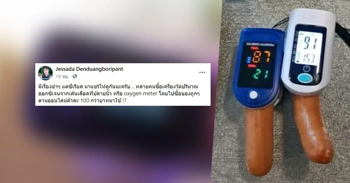 “มีเรื่องขำๆ แต่ซีเรียส มาแชร์ให้ดูกันนะครับ .. หลายคนซื้อเครื่องวัดปริมาณออกซิเจนจากเส้นเลือดที่ปลายนิ้ว หรือ oxygen meter โดยไปซื้อของถูกๆตามออนไลน์ตัวละ 100 กว่าบาทมาใช้ !? ไม่ควรซื้อเด็ดขาดนะครับ! มันจะเป็นของที่วัดค่าออกมาไม่ได้แม่นอะไรนะ อย่างของท่านนี้ (ดูรูป)