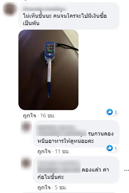 อย่างไรก็ตาม ก็ได้มีผู้ใช้เฟซบุ๊กท่านหนึ่งได้ออกมาโพสต์ถาม เพราะตนก้ใช้เครื่องวัดออกซิเจนแบบถูก ๆ อยู่ แต่ใช้ไปที่เท้าหมา แมว หรือวัดที่ปากกา ก็ไม่มีค่าชีพจรขึ้นเหมือนในรูปที่อ. แนบมา จึงเป็นข้อสงสัยกันอยู่ในตอนนี้
