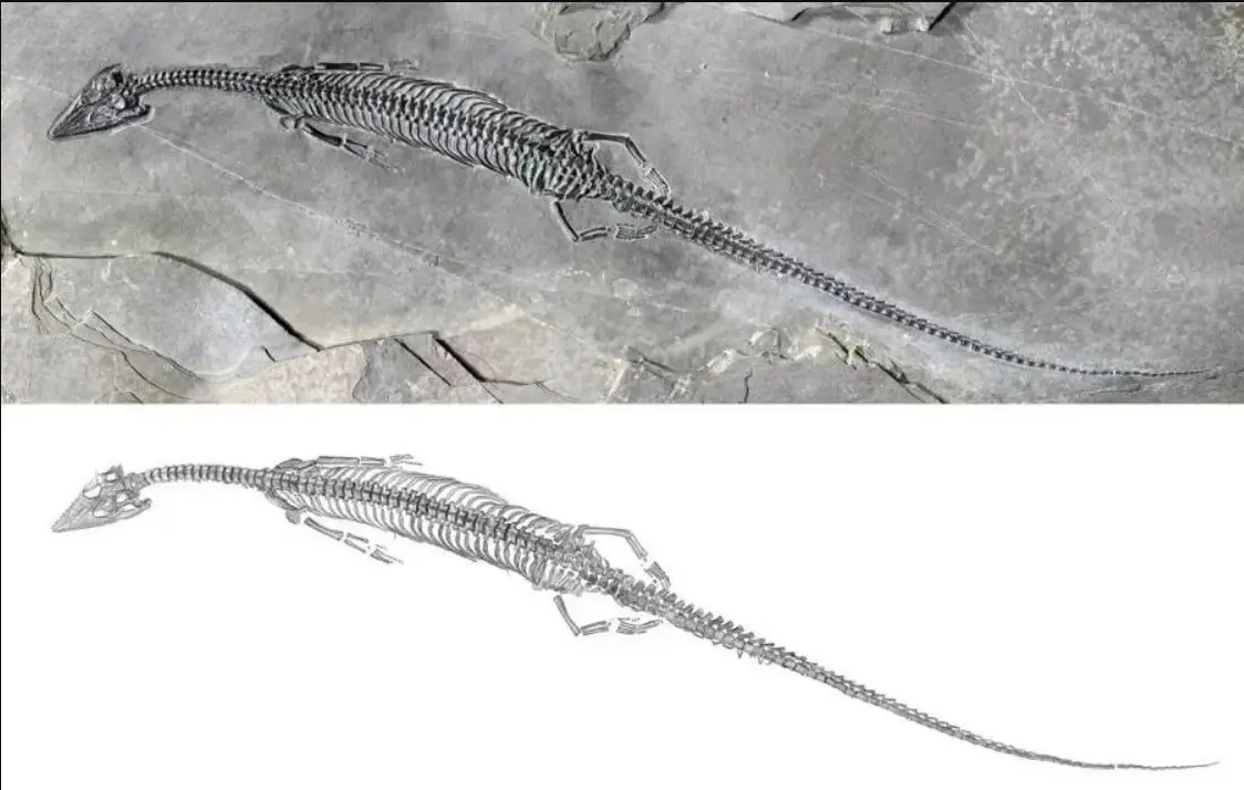 คณะนักวิทยาศาสตร์จีนค้นพบฟอสซิล สัตว์พันธุ์ใหม่ เผยเป็นสัตว์เลื้อยคลานในทะเลที่มีหางที่ยาวที่สุดเท่าที่เคยค้นพบ อายุประมาณ 244 ล้านปี