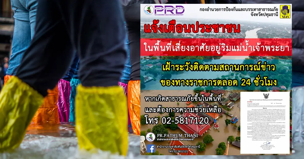 สำนักงานประชาสัมพันธ์จังหวัด ปทุมธานี แจ้งประชาชน กลุ่มอาชีพประมง เพาะปลูก แพร้านอาหาร ลุ่มแม่น้ำเจ้าพระยา รับมือกับฝนตกหนักและนำ้ท่วม