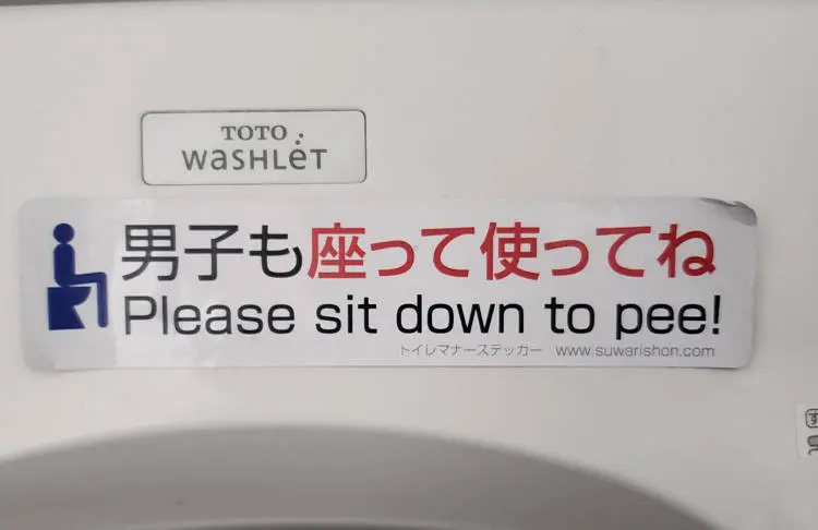 เทรนด์การฉี่ขณะนั่งเป็นที่แพร่หลายในหมู่ผู้ชายญี่ปุ่นถึงขนาดมีคำศัพท์สแลงหรือนิยามชายนั่งฉี่ว่า ซูวาริโชน ( suwari-shon) ซึ่งเป็นการเล่นคำในภาษาญี่ปุ่นโดยนำคำว่า “suwari” ซึ่งแปลว่า “นั่ง” และ “shonben” ซึ่ง หมายถึง ‘ปัสสาวะ’ มารวมกัน ซึ่งเทรนด์นดังกล่าวมีการเปิดเผยครั้งแรกเมื่อ ปลายทศวรรษ 1990 แต่ความนิยมก็ค่อยๆ เพิ่มขึ้นตั้งแต่นั้นมา