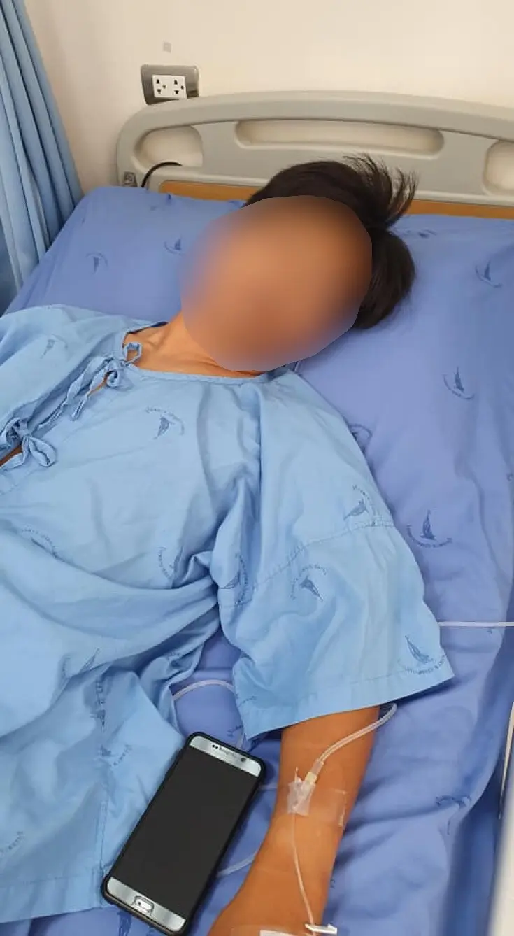 แต่ สามีของเธอเริ่มมีอาการอื่นแทรกซ้อนคือตาบวมปิด 2 ข้าง คันและแสบร้อนรอบตา มีการอาการคันที่ขา แน่นจมูกและอาเจียน