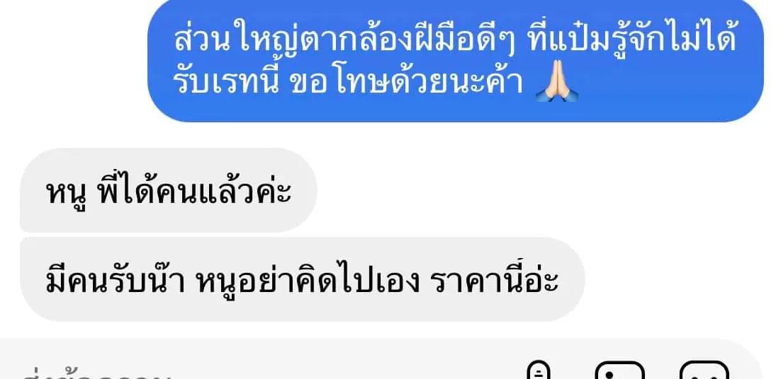 ก็ไม่มีใครรับราคานี้จริงๆ ผ่านไป 3 ชมเค้าทักกลับมาบอกได้แล้วค่ะ มีตากล้องรับนะราคานี้น้องแป๋มอย่าคิดไปเอง #จึ้ก หน้าสั่นไม่รู้ตัว 55555โอ้ยยยยแม่ ดีใจด้วยค้าบบบบหนูผิดไปแล้วค่าที่ไปคิดเอาเองว่าราคานี้ไม่ควรรับเนอะ
