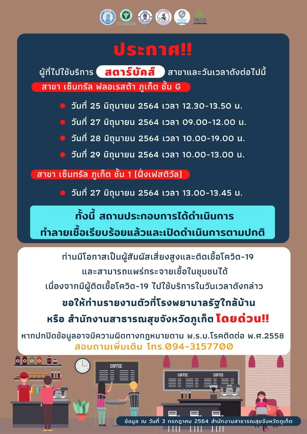 ผู้ที่ไปใช้บริการ ร้านสตาร์บัคส์ สาขาและวันเวลาดังต่อไปนี้