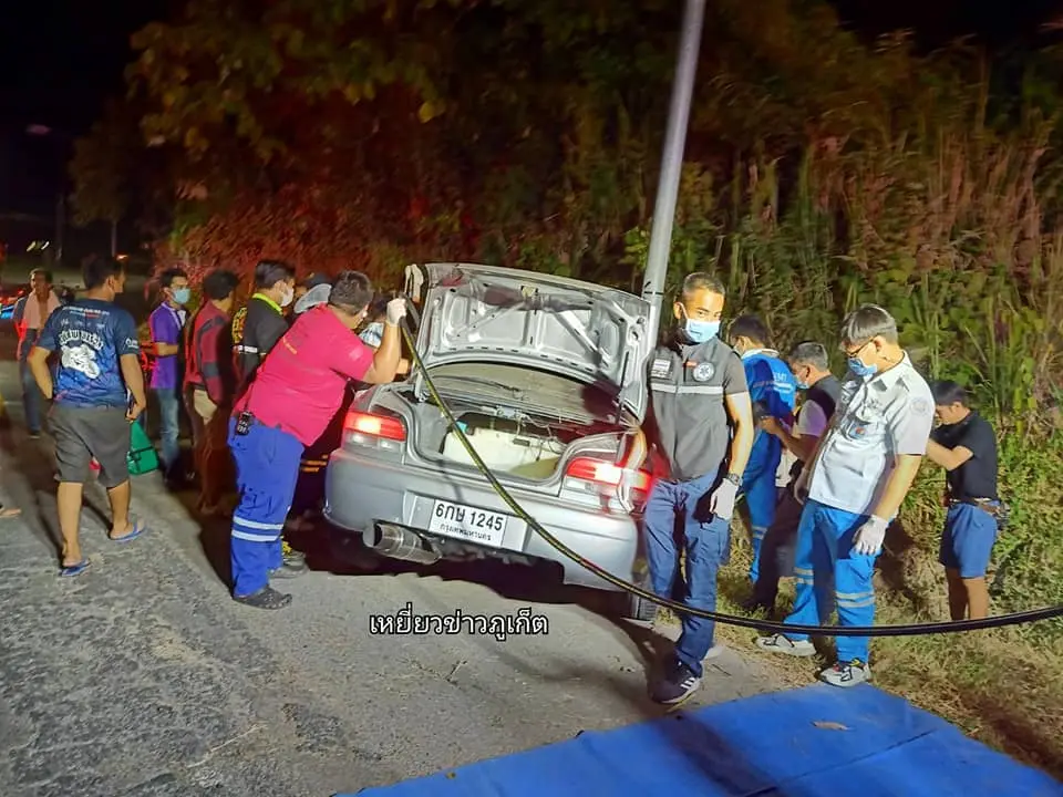 ได้รับแจ้งเกิดเหตุรถเก๋งเสียหลักชนอัดติดกับเสาไฟส่องสว่าง บริเวณริมถนน หน้าโรงเรียนบ้านอ่าวน้ำบ่อ ต. เมือง จ. ภูเก็ต หลังรับแจ้งทางเจ้าหน้าที่ตำรวจจึงเดินทางไปตรวจสอบพร้อมด้วยเจ้าหน้าที่มูลนิธิกุศลธรรมภูเก็ตที่เกิดเหตุพบรถเก๋งป้ายทะเบียน 6 กษ 1245 กรุงเทพมหานคร ชนอัดติดอยู่กับเสาไฟฟ้าส่องสว่าง