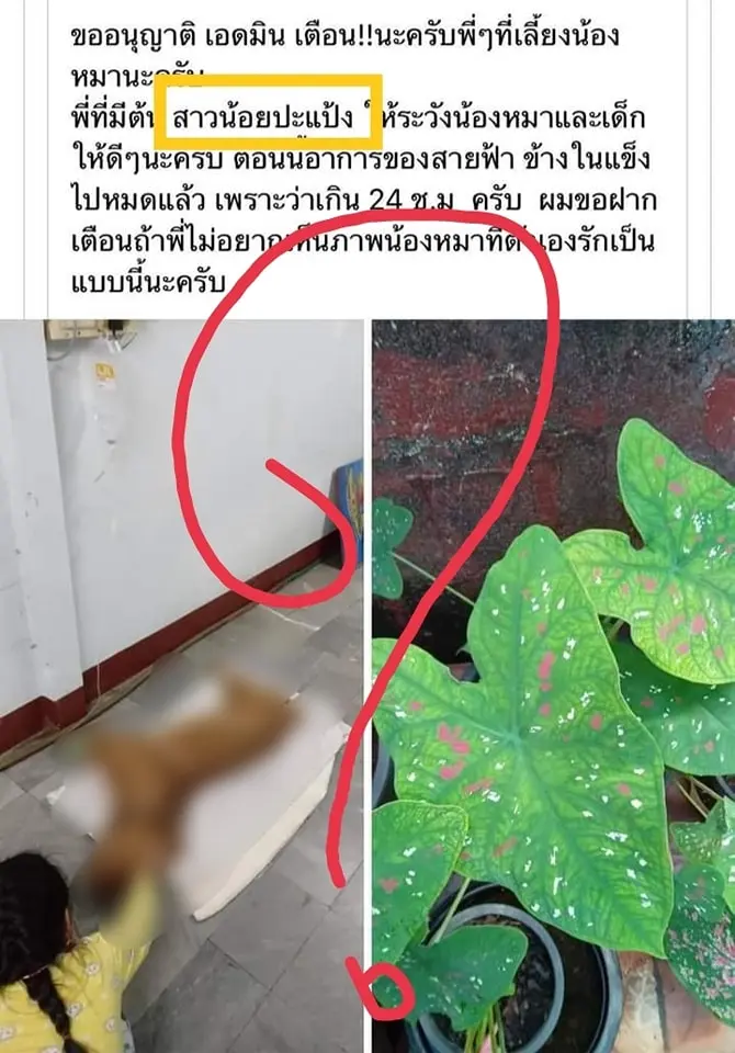 มีคำถามจากทางบ้านมา พร้อมรูปจากเพจของกลุ่มคนรักสัตว์เลี้ยง ซึ่งโพสต์เกี่ยวกับกรณีที่สุนัขของเขาเสียชีวิตไป เนื่องจากน่าจะไปกิน “ต้นสาวน้อยประแป้ง” มา พร้อมคำอธิบายเรื่องพิษจากสารแคลเซียมออกซาเลต (calcium oxalate) ที่อยู่ในต้นสาวน้อยประแป้ง
