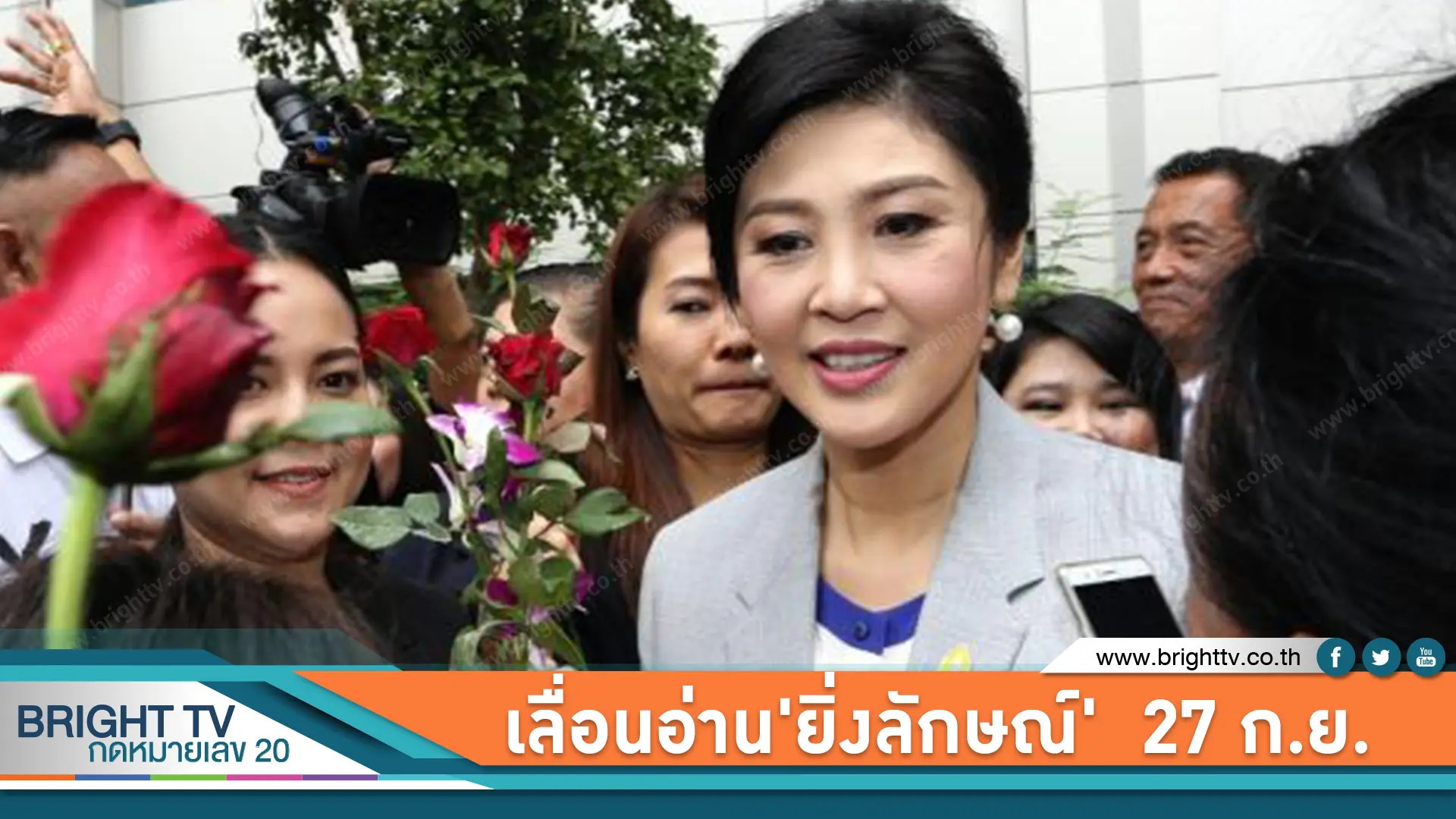ผู้สื่อข่าวรายงานบรรยากาศล่าสุดที่ ศาลฎีกาแผนกคดีอาญาของผู้ดำรงตำแหน่งทางการเมือง ว่า ตอนนี้เป็นที่แน่นอนแล้วว่า น.ส.ยิ่งลักษณ์ ชินวัตร อดีตนายกรัฐมนตรี จำเลยในคดีไม่ระงับยับยั้งความเสียหายในโครงการรับจำนำข้าว และคดีการระบายข้าวแบบรัฐต่อรัฐ (จีทูจี) จะไม่เดินทางมาฟังคำพิพากษา โดยให้ทนายความเดินทางมาแจ้งต่อศาล น.ส.ยิ่งลักษณ์ป่วยกระทันหันด้วยโรคน้ำในหูไม่เท่ากัน โดยศาลได้นัดให้มาฟังคำพิพากษาใหม่ในวันที่ 27 ก.ย. 2560