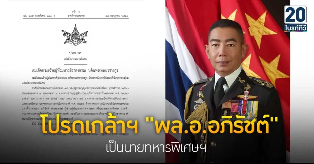 เว็บไซต์ราชกิจจานุเบกษา เผยแพร่ประกาศแต่งตั้ง “พล.อ.อภิรัชต์ คงสมพงษ์” เป็นนายทหารพิเศษ ประจำกรมทหารมหาดเล็กราชวัลลภรักษาพระองค์