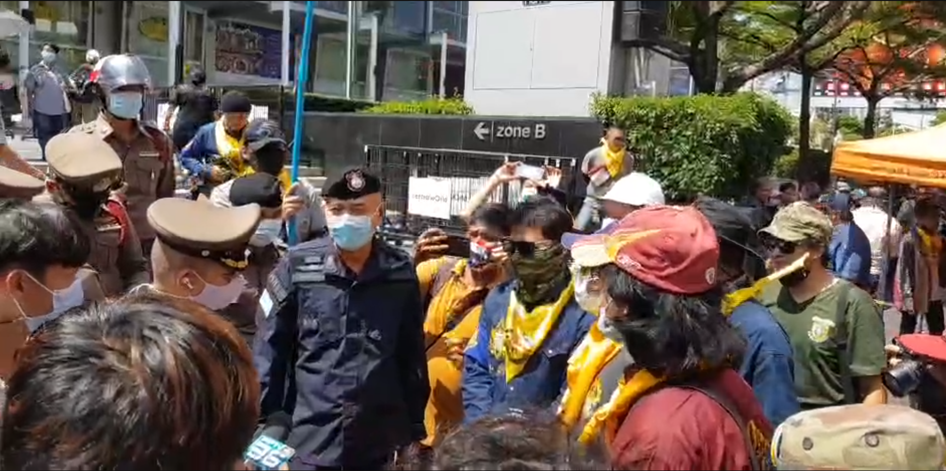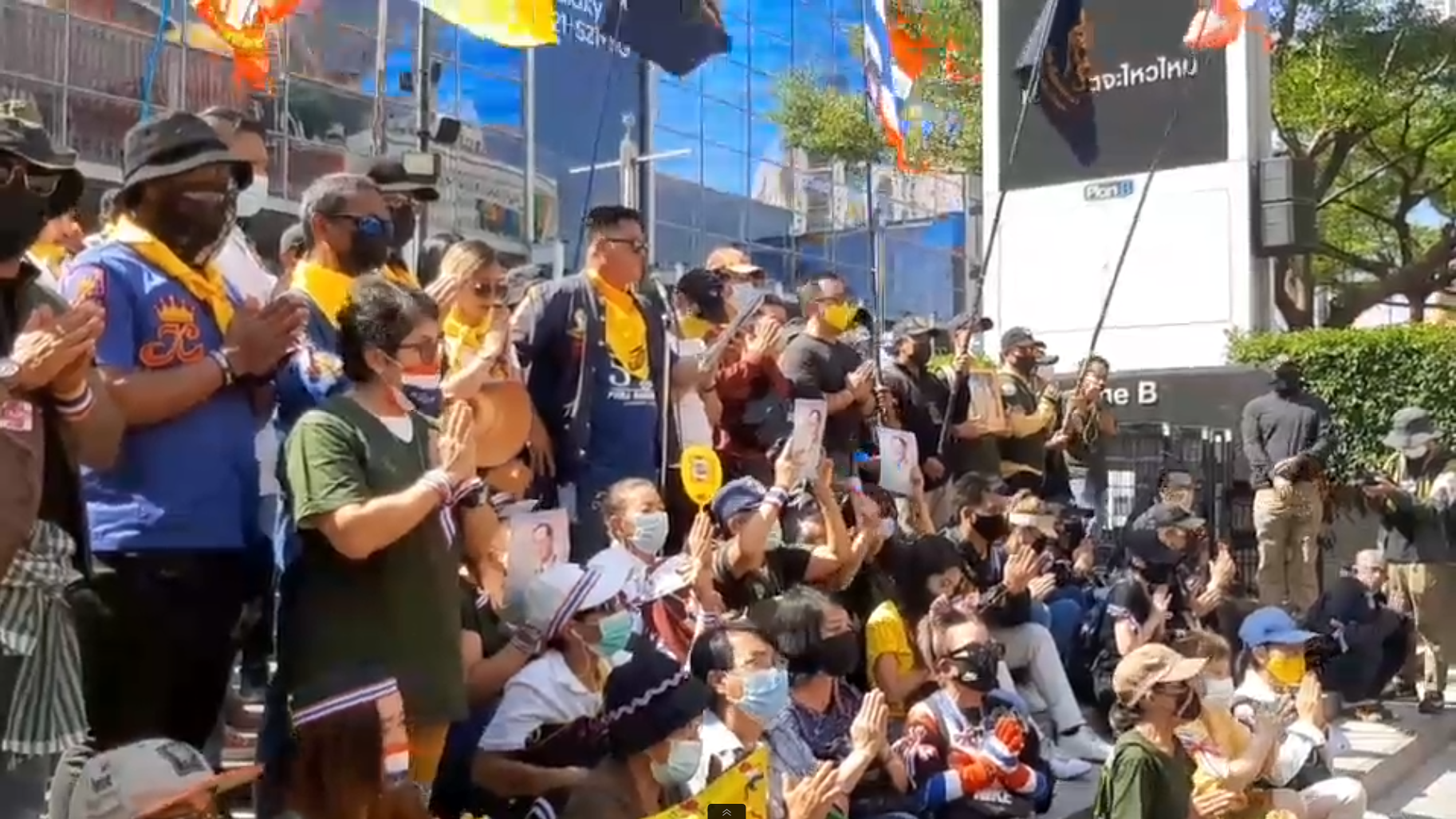 วันที่ 6 มี.ค.64 เมื่อเวลา 13.30 น. กลุ่ม อาชีวะปกป้องสถาบัน และภาคีประชาชนผู้จงรักภักดีทุกกลุ่มทุกสาขาได้นัดรวมตัวกัน บริเวณห้างสรรพสินค้าเซ็นทรัลเวิร์ด ฝั่งถนนราชดำริ เพื่อประกาศจุดยืน และแสดงพลังปกป้องสถาบันพระมหากษัตริย์ โดยในการชุมนุมครั้งนี้ ทางกลุ่มอาชีวะปกป้องสถาบันได้มีการใช้เครื่องขยายเสียง โบกธงชาติ และธงสีน้ำเงินที่เขียนว่าปกป้องสถาบัน พร้อมกับผูกผ้าพันคอสีเหลือง ขณะที่ตำรวจได้เข้าแจ้งข้อกฎหมาย และวางกำลังในพื้นที่โดยรอบในช่วงที่มีการชุมนุมด้วย