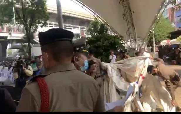 มีรายงานว่า ตำรวจได้จับกุมประชาชน ที่เข้าร่วมกิจกรรมดังกล่าวเข้าไปไว้ในรถผู้ต้องขัง ท่ามกลางบรรยากาศชุลมุน ตำรวจในเครื่องแบบถอนกำลังภายหลังการจับกุม และมีชุดควบคุมฝูงชนเข้ามาตรึงกำลังเพื่อกระชับพื้นที่ โดยตำรวจยังได้ประกาศว่าจะให้เวลา 5 นาที แก่สื่อมวลชนและประชาชนที่ยังเหลืออยู่ เพื่อให้สลายตัว เนื่องจากการรวมตัวผิดพรก.ฉุกเฉินฯและพรบ.ควบคุมโรคติดต่อ