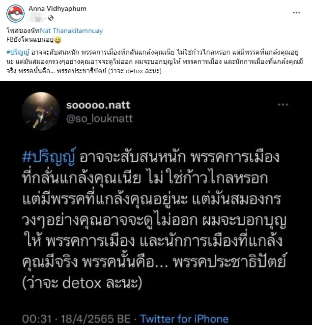 แอนนา ไฮโซลูกนัท โพสต์เดือดซัด ปริญญ์ สมองกลวง มีพรรคการเมืองกลั่นแกล้ง แต่ดันไม่รู้ ทั้งที่อยู่ใกล้ตัวเองแท้ๆ