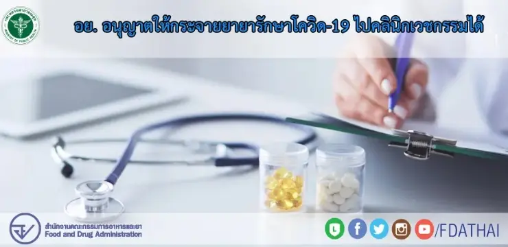 ตามที่ก่อนหน้านี้ จากเดิมที่ผู้ขึ้นทะเบียนสามารถจำหน่าย ยารักษาโควิด-19 ให้กับโรงพยาบาลทั้งภาครัฐและเอกชนได้เท่านั้น ก่อนที่ล่าสุด สำนักงานคณะกรรมการอาหารและยา (อย.) จะออกประกาศเพิ่มเติมอนุญาตให้กระจาย ยารักษาโควิด-19 ไปคลินิกเวชกรรมได้ โดยคลินิกเวชกรรมสามารถจัดหายาได้เองจากบริษัทเอกชนที่นำเข้าและขึ้นทะเบียนกับ อย. แล้ว