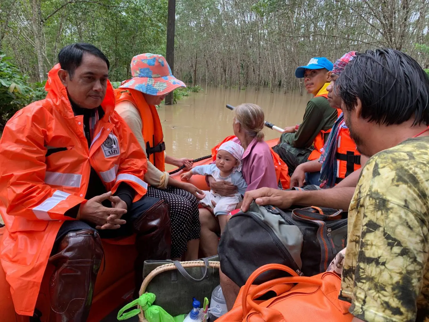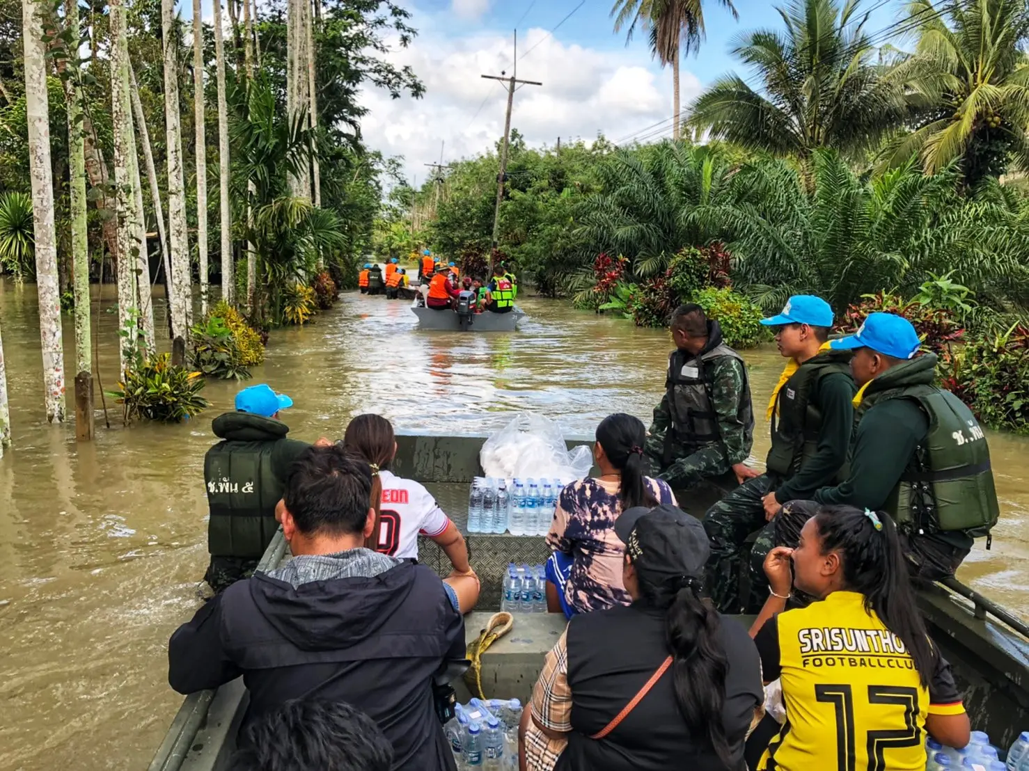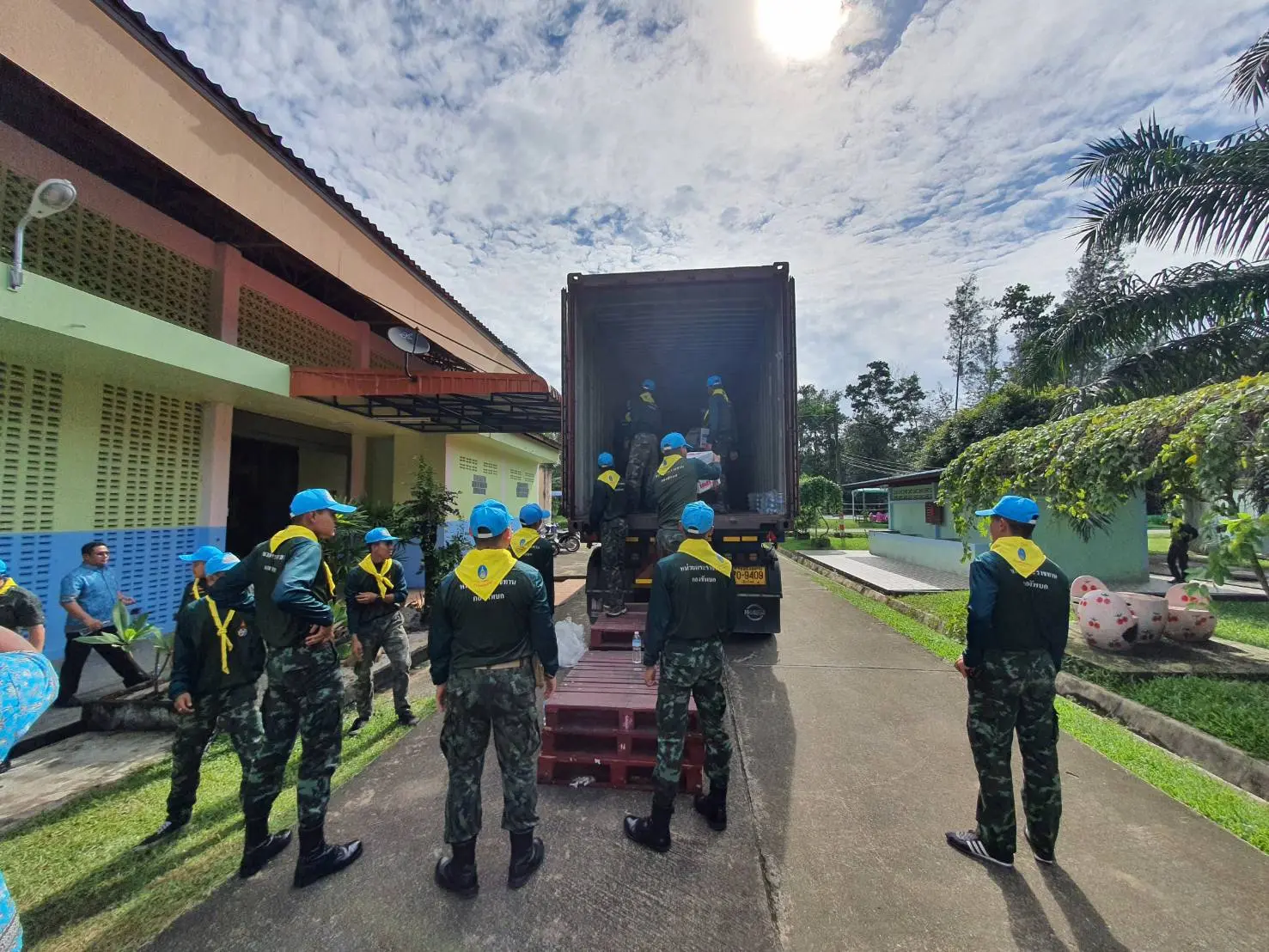 จ.สุราษฎร์ธานี ซึ่งขณะนี้ อ.พูนพิน มีน้ำท่วมขังสูง 70 – 90 เซ็นติเมตร ประชาชนไม่สามารถเดินทางได้ กรมทหารราบที่ 25 เข้าแจกจ่ายอาหารกล่องและขนย้ายสิ่งแจกจ่ายให้กับประชาชนริมฝั่งแม่น้ำตาปี