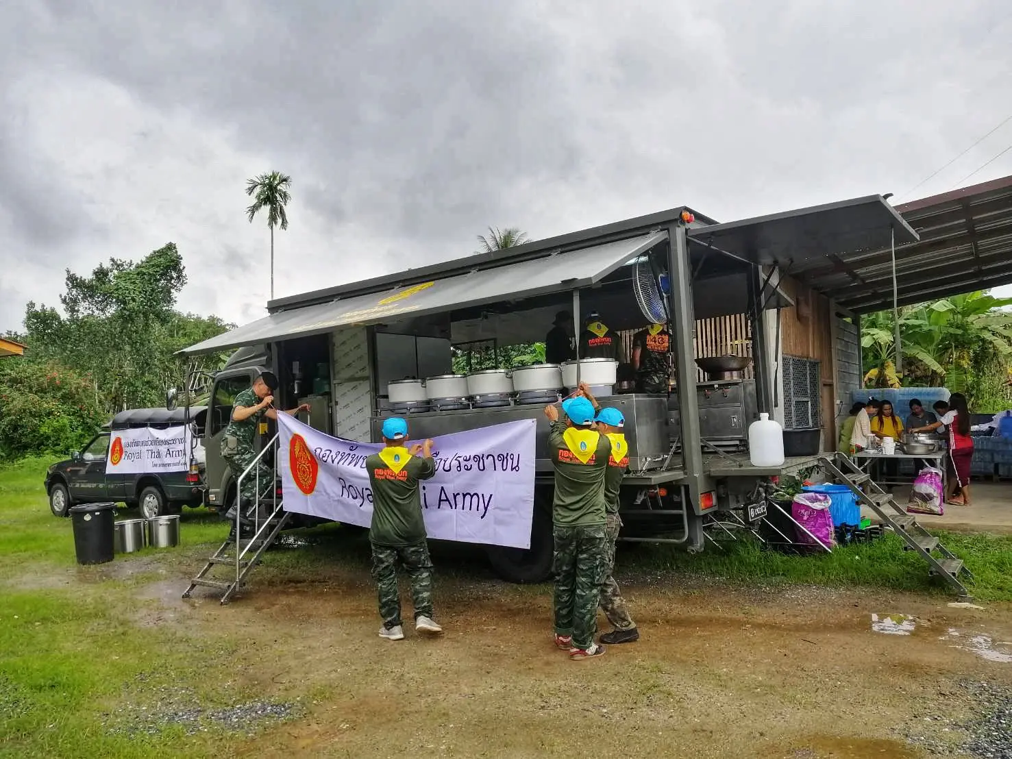 จ.ตรัง มณฑลทหารบกที่ 43 ร่วมกับ อบต.ควนเมา และส่วนราชการ จัดรถครัวสนาม เพื่อประกอบอาหารและนำไปแจกจ่ายให้กับผู้ประสบอุทกภัย ที่ ต.ควนเมา อ.รัษฎา