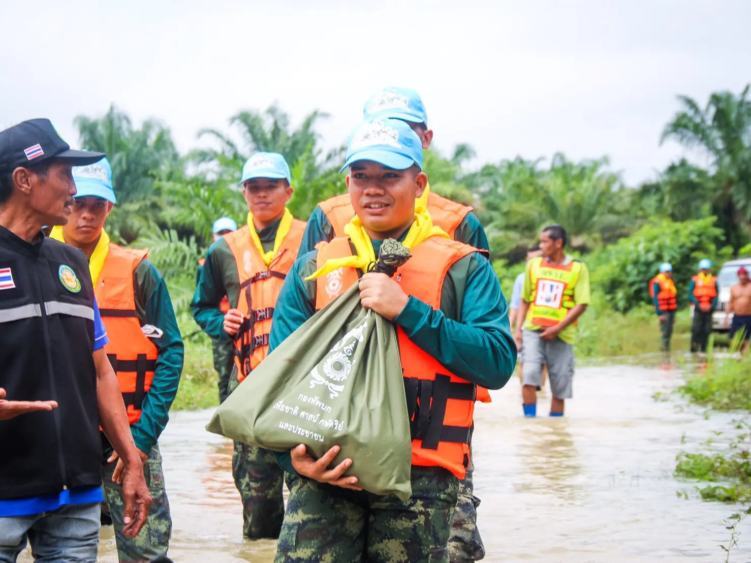 จ.สงขลา กองพลทหารราบที่ 15 ลงพื้นที่ มอบถุงยังชีพ ให้กับผู้ประสบภัยในพื้นที่ อ.ระโนด ซึ่งปัจจุบันน้ำยังคงท่วมขัง