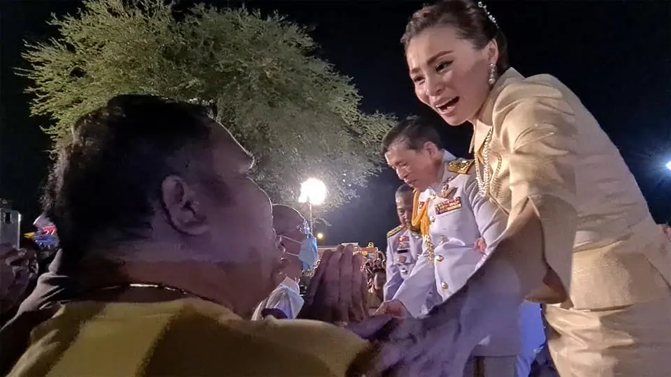 สมเด็จพระบรมราชินีเสด็จพระราชดำเนินมาถึง ตนก็ได้ถวายพระบังคมทูลว่า “ข้าพระพุทธเจ้าจากหมู่บ้านเสื้อแดง” พระพุทธเจ้าข้า พระราชินีท่านก็ได้หันพระพักตร์ พร้อมมีพระราชปฏิสันถารตรัสว่า “…ขอบคุณมากค่ะ ขอบคุณมากนะ…” และยื่นพระหัตถ์มาตบไหล่ขวาของตน