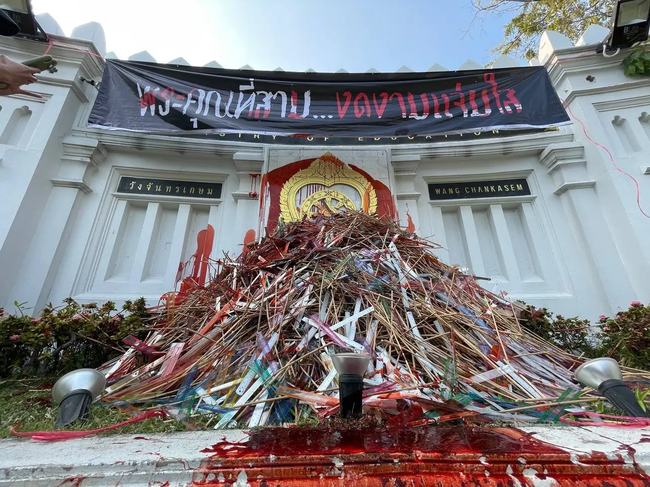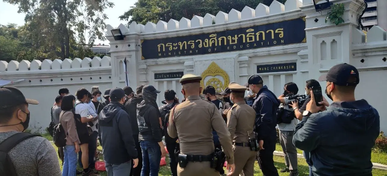 ขณะที่ตำรวจได้เดินทางมายังบริเวณหน้ากระทรวงศึกษาที่กลุ่มนักเรียนเลวจัดกิจกรรมพระคุณที่สาม พร้อมกับเน้นย้ำให้กลุ่มนักเรียนทำกิจกรรมได้ แต่ต้องอยู่ภายใต้มาตรการป้องกันโควิด19 และต้องอยู่ภายในระยะเวลาที่กำหนด ส่วนสาเหตุที่เรียกตัวกลุ่มนักเรียนไปนั้น เพราะต้องการชี้แจงมาตรการต่าง โดยมีการเว้นระยะห่าง ไม่แออัด มีการสวมใส่หน้ากากอนามัย พร้อมกับขอให้ยกเลิกกิจกรรมที่บริเวณหน้ากระทรวงศึกษา แต่กลุ่มนักเรียนได้ขอต่อรองขอจัดกิจกรรมเป็นเวลา 15 นาที โดยกลุ่มนักเีียนเลวได้เริ่มทำกิจกรรม โดยการนำน้ำสีแดงสาดใส่ไม้เรียว ไม้บรรทัด กรรไกร และป้ายกระทรวง และเสร็จสิ้นการทำกิจกรรมในเวลา 15:28 น.