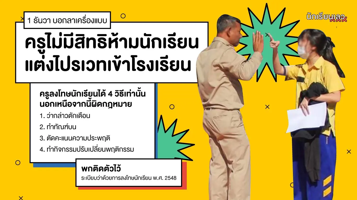 ครูไม่มีสิทธิห้ามนักเรียนแต่งไปรเวทเข้าโรงเรียน การแต่งไปรเวทไม่ใช่โทษสถานหนัก ถ้าครูลงโทษเกินกว่าเหตุ ครูจะผิดกฎหมายทันที! แต่งไปรเวทเข้าโรงเรียนได้”