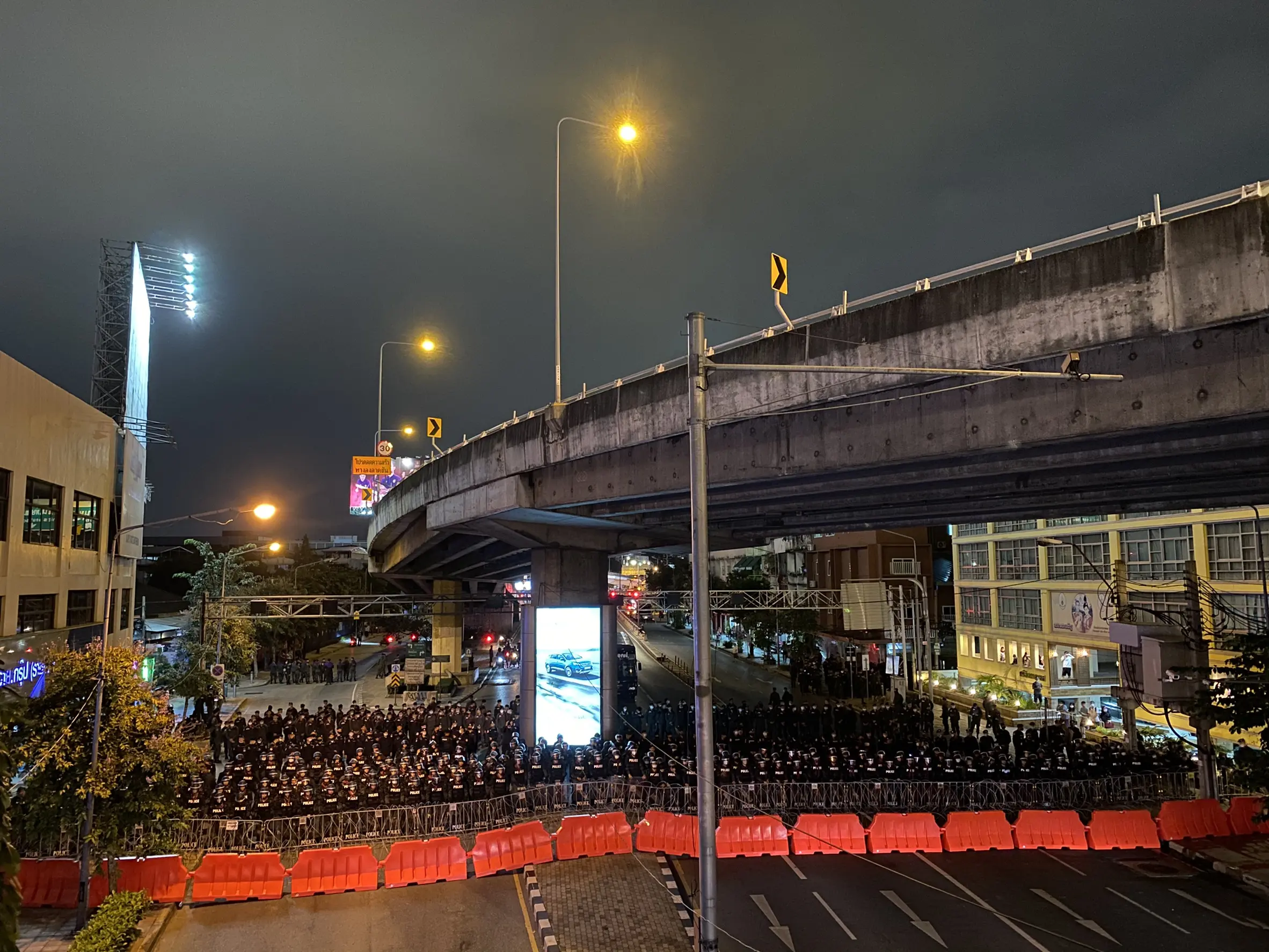 ม็อบ 21 ตุลา — (21 ตุลาคม 2563) ช่วงเวลาประมาณ 18.55 น. เจ้าหน้าที่ตำรวจ นำลวดหนามและแบริเออร์มาปิดถนนเพชรบุรีช่วงแยก แยกอุรุพงษ์ เพื่อควบคุมสกัดกั้นการเคลื่อนขบวนของกลุ่มผู้ชุมนุม ม็อบ 21 ตุลา ที่เคลื่อนมาจากอนุสาวรีย์ชัยสมรภูมิ
