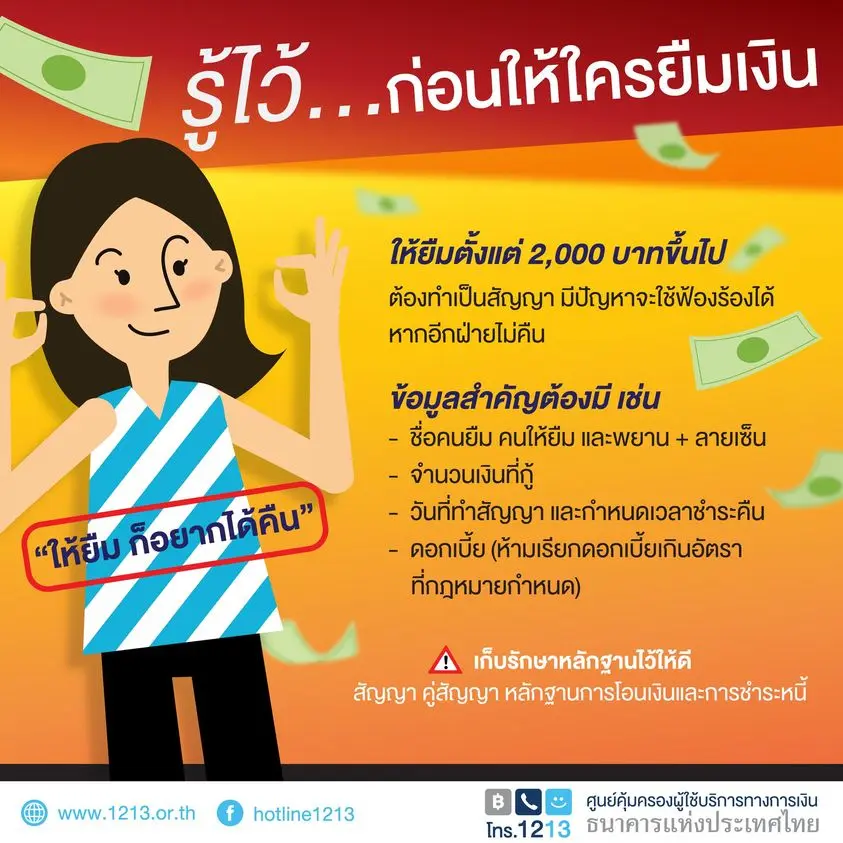 ศูนย์คุ้มครองผู้ใช้บริการทางการเงินธนาคารแห่งประเทศไทย (ศคง.) ประชาสัมพันธ์ข้อมูลสำคัญก่อนให้ใคร ยืมเงิน เพื่อความสบายใจทั้งสองฝ่าย