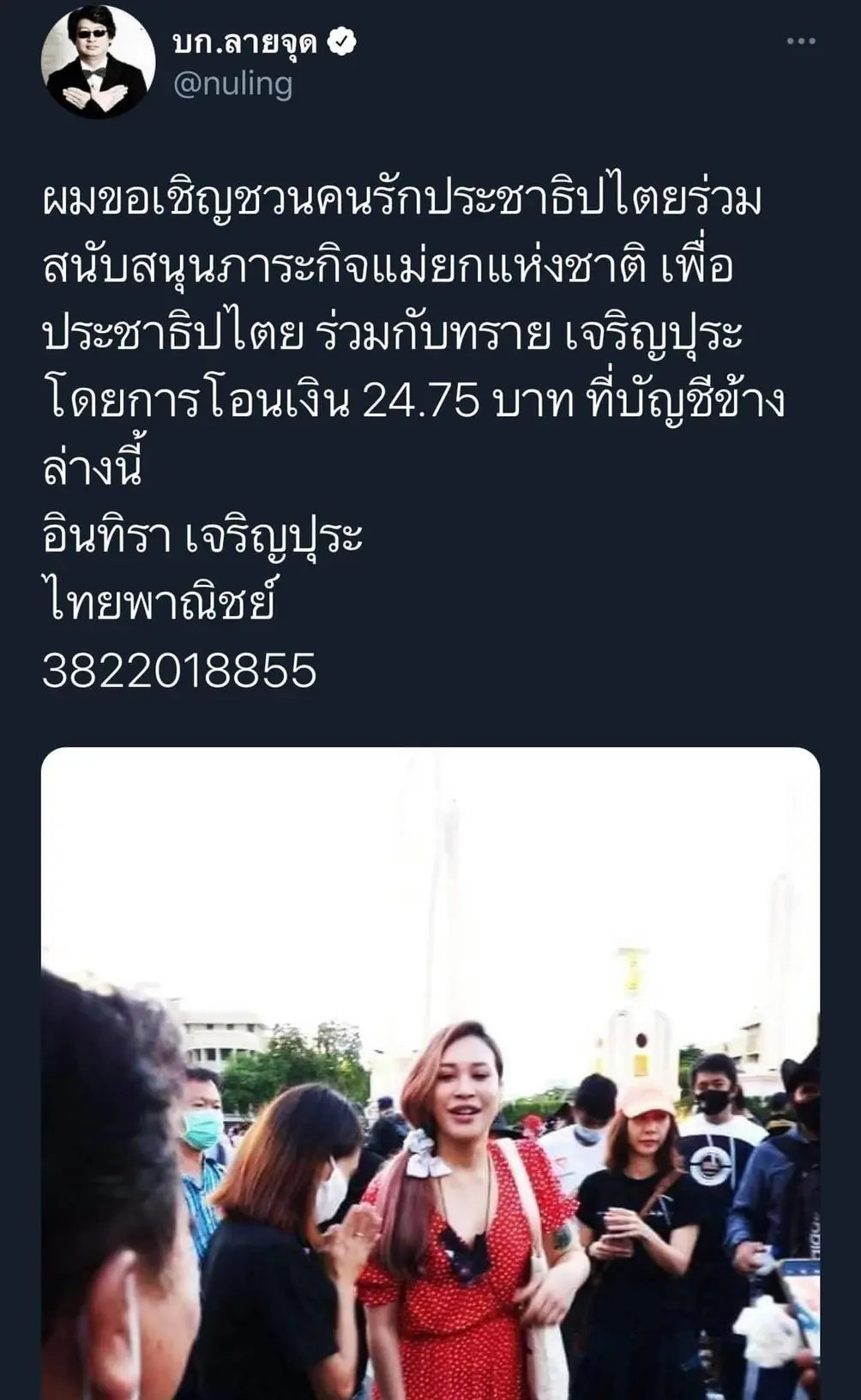 เรียกว่าสายซัพพอร์ตให้บอกแม่!! สำหรับนักแสดงสาว ทราย เจริญปุระ ที่เป็นหนึ่งคนบันเทิงออกมาเรียกร้องประชาธิปไตย ซึ่งก่อนหน้านี้ ทราย ได้ซัพพอร์ตกลุ่มชุมนุม “เยาวชนปลดแอก” ด้วยการลงพื้่นที่เเจกอาหาร รวมถึงรถส้วมจำนวนมาก เพื่ออำนวยความสะดวกให้แก่ผู้ชุมนุม ล่าสุด ชาวเน็ตแห่ชื่นชมในพลังแห่งการซัพพอร์ตของ ทราย เจริญปุระ ไม่ว่าขาดเหลืออะไร เจ้าตัวก็จัดให้ทันตาเห็น เรียกได้ว่า อยู่กับแม่ ไม่มีอดจริงๆค่า