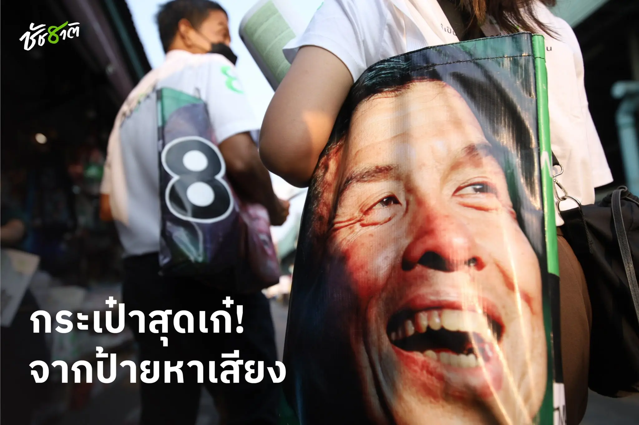 ชาวเน็ตฮือฮาป้ายหาเสียง ชัชชาติ ผู้สมัครเลือกตั้ง ผู้ว่าฯกทม. หมายเลข 8 กับไอเดียรีไซเคิล ทำเป็นกระเป๋าสุดเก๋