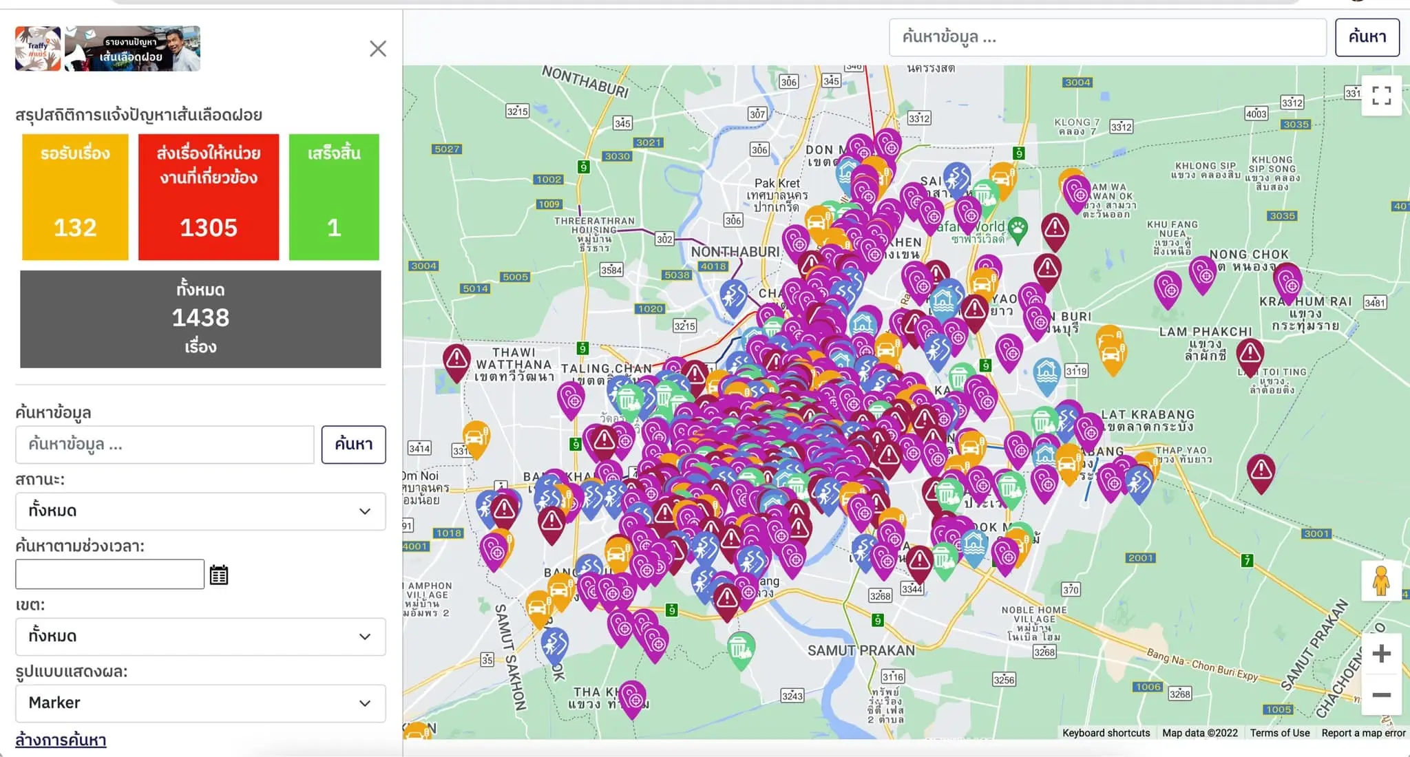 - ระบบจะแจ้งกลับเมื่อปัญหาได้รับการแก้ไข และมีการประมวลในภาพรวมว่าในแต่ละพื้นที่ มีแจ้งเรื่องอะไรมาบ้าง ค้างกี่เรื่อง แก้ไขเสร็จแล้วกี่เรื่อง