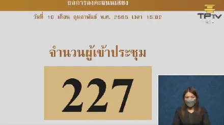 หลังจากฝ่ายค้าน เสนอนับองค์ประชุม โดยให้สมาชิกกดบัตรแสดงตน ก่อนที่นับองค์ประชุมได้ 227 คน จาก 237 เสียง