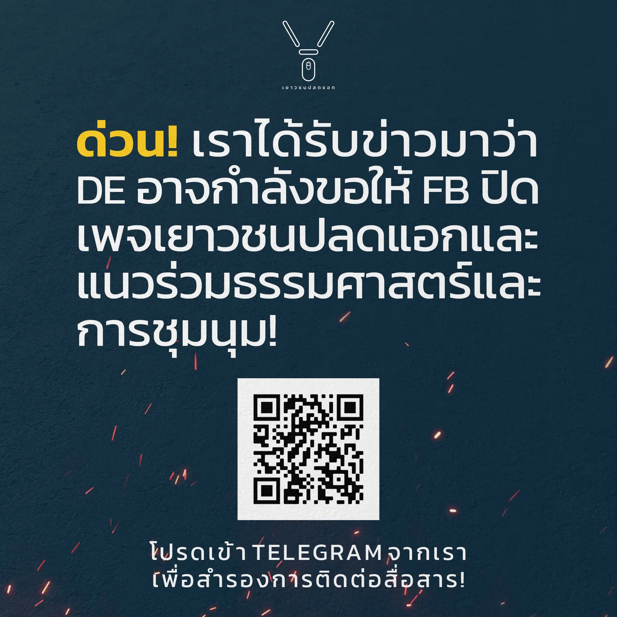 ” ด่วน! เราได้รับข่าวมาว่า DE อาจกำลังขอให้ FB ปิดเพจ “เยาวชนปลดแอก - FreeYOUTH” และ “แนวร่วมธรรมศาสตร์และการชุมนุม” !