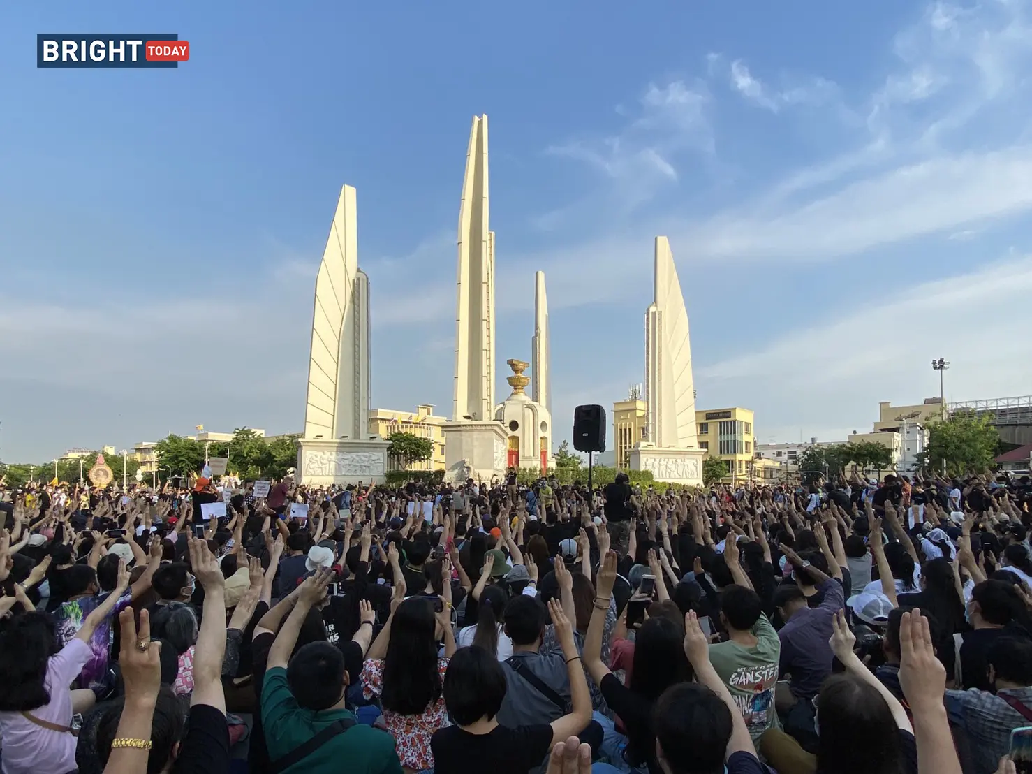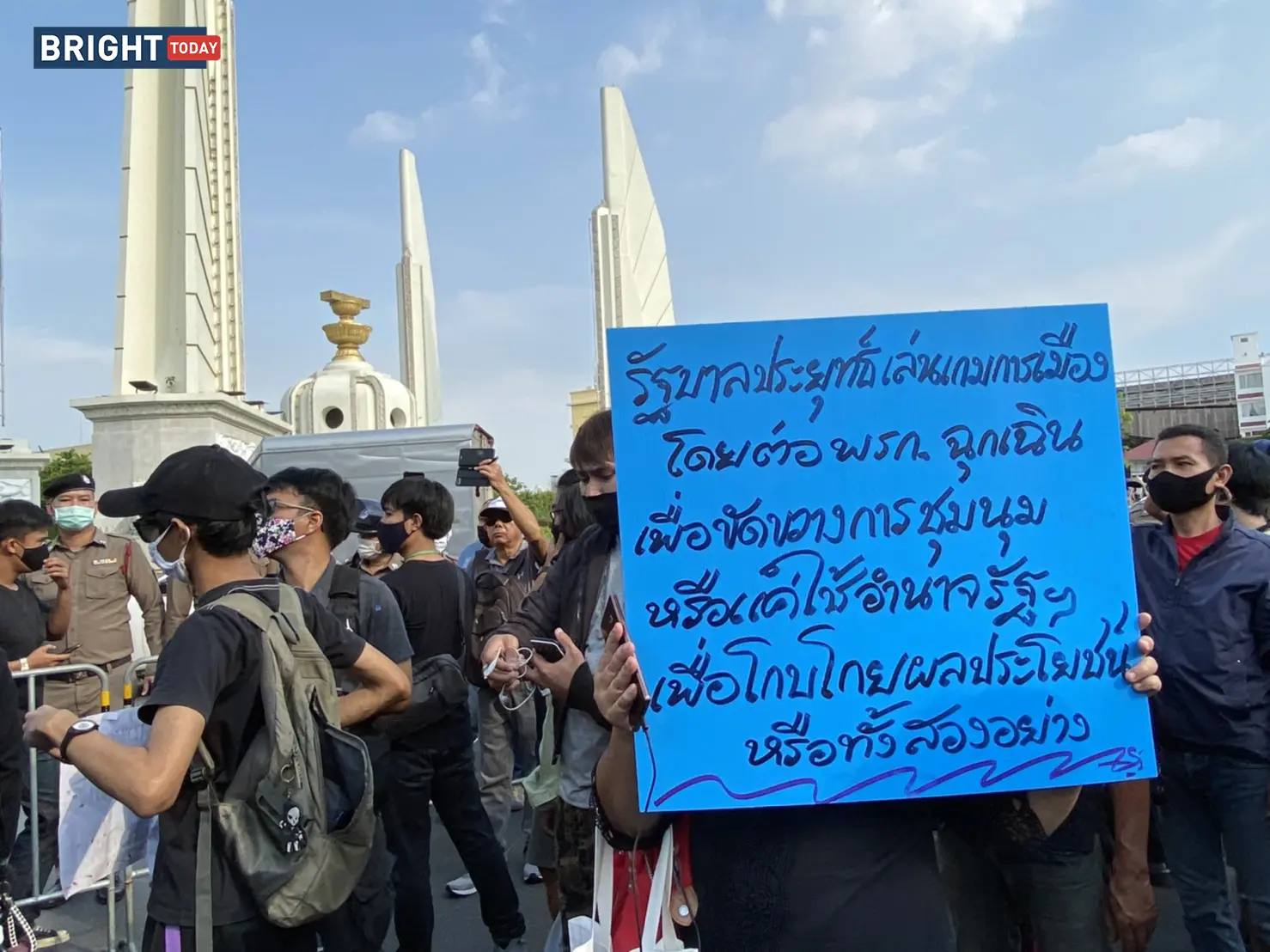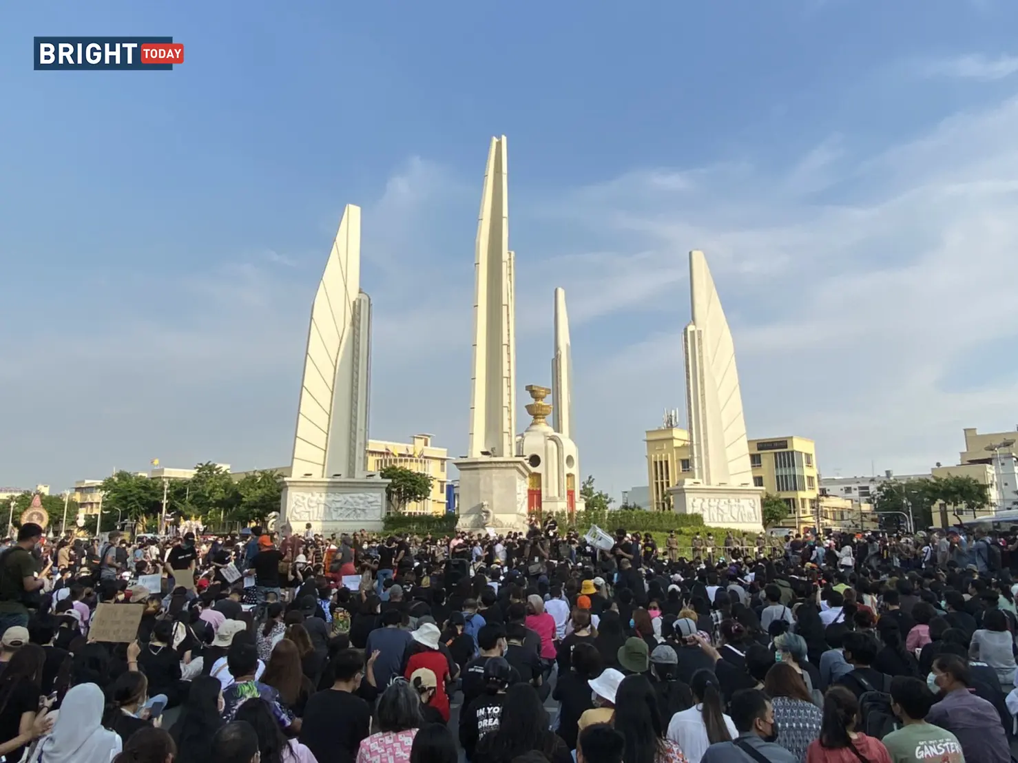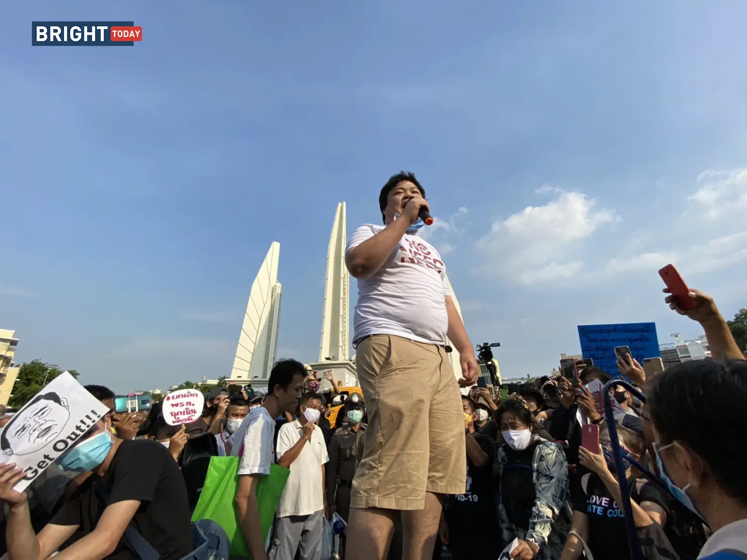 บรรยากาศการชุมนุมของนักศึกษา กลุ่มเยาวชนปลดแอก ที่อนุเสาวรีย์ประชาธิปไตย เพื่อเรียกร้องให้รัฐบาลยุบสภา นำโดยกลุ่ม เยาวชนปลดแอก