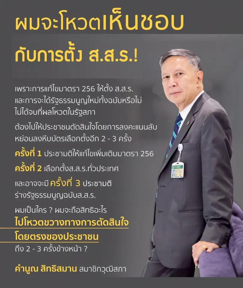 นี่แหละคือหนึ่งในเหตุผลสำคัญที่สุดที่ทำให้ผมตัดสินใจว่าจะโหวตเห็นชอบกับญัตติแก้ไขเพิ่มเติมรัฐธรรมนูญมาตรา 256 ให้มีการตั้งส.ส.ร.เพื่อยกร่างรัฐธรรมนูญใหม่ทั้งฉบับ ทั้งที่ก็เห็นทั้งจุดแข็งและจุดอ่อน แต่ไม่อาจหาเหตุผลใดมาตอบคำถามได้จริง ๆ ว่าเหตุใดจึงจะต้องไปโหวตคัดค้านตั้งแต่ต้นในรัฐสภาทั้ง ๆ ที่คำตอบสุดท้ายอยู่ที่ประชาชนทั้งประเทศ