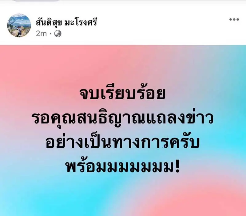 ขณะที่น.ส.อัญชะลี ไพรีรักกได้โพสต์ข้อความระบุว่า “จบแล้วค่ะทุกท่าน รอคุณสนธิญาณแถลงอย่างเป็นทางการนะคะ” ส่วนอดีตผู้ประกาศข่าวคนอื่นของเนชั่นทีวีอย่างนายธีระ ธัญไพบูลย์และ นายสันติสุข มะโรงศรีต่างก็โพสต์ข้อความในไปในทางเดียวกันว่า “การเจรเจาเรียบร้อยแล้ว ให้รอฟังการแถลงจากนายสนธิญาณ