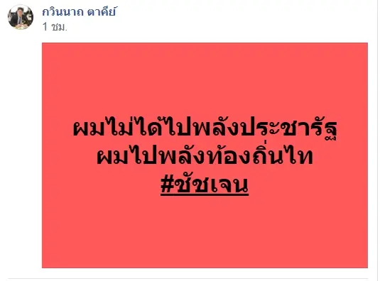 ขณะที่ แฟนเพจ ของพรรคพลังท้องถิ่นไท ได้โพสต์ข้อความ ระบุว่า