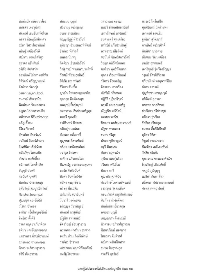 ทั้งนี้ ได้ทำการรวบรวมรายชื่อถึงเวลา ๑๒.๐๐ นาฬิกา