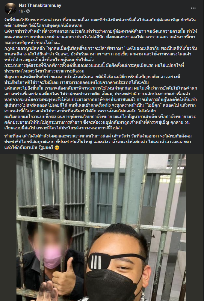วันนี้ที่ผมไปรับทราบข้อกล่าวหา ที่สน.ดอนเมือง ขณะที่กำลังพิมพ์ลายนิ้วมือได้เจอกับผู้ต้องหาที่ถูกกักขังในคดียาเสพติด ได้มีโอกาสพูดคุยกันนิดหน่อย