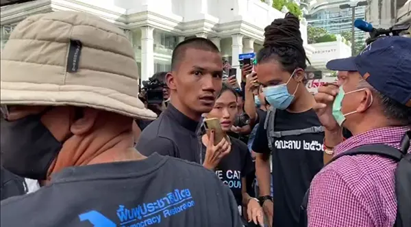 ขณะที่กลุ่มผู้ชุมนุมได้ลงมาพื้นผิวการจราจรบริเวณสี่แยกราชประสงค์ และมีการผลักดันแนวของเจ้าหน้าที่ ที่พยายามกระชับพื้นที่ให้กลุ่มผู้ชุมนุมขึ้นไปบนฟุตบาท แต่ไม่เป็นผล เนื่องจากกลุ่มผู้ชุมนุมฝ่าแนวกั้นของเจ้าหน้าที่ พร้อมตะโกนขับไล่ พล.อ.ประยุทธ จันทร์โอชา ลาออกจากนายกรัฐมนตรีและเรียกร้องให้มีการปล่อยตัวแทนแกนนำ แต่ยังไม่มีเหตุการณ์กระทบกระทั่งกันเกิดขึ้น