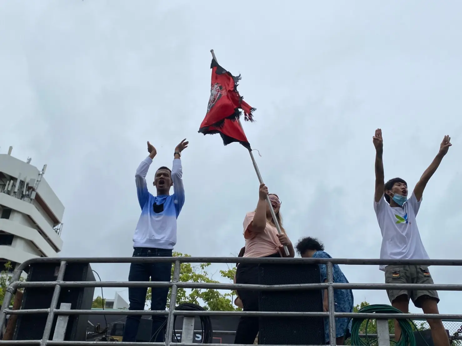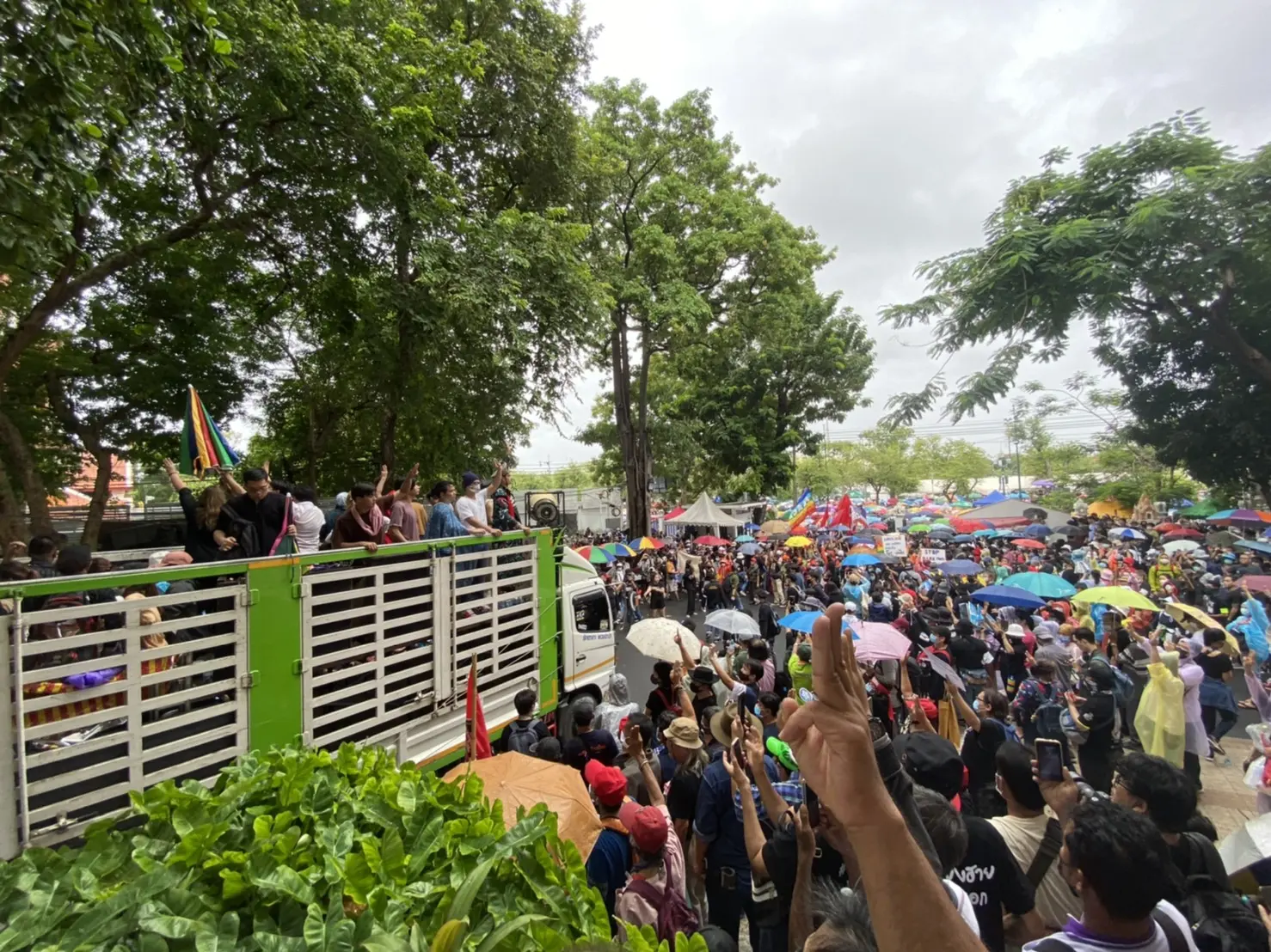 เข้าได้อีกประตู! เพนกวิน นำมวลชนคนเสื้อแดง ที่นั่งเรือมาเข้า มธ. ประตู ท่าพระจันทร์