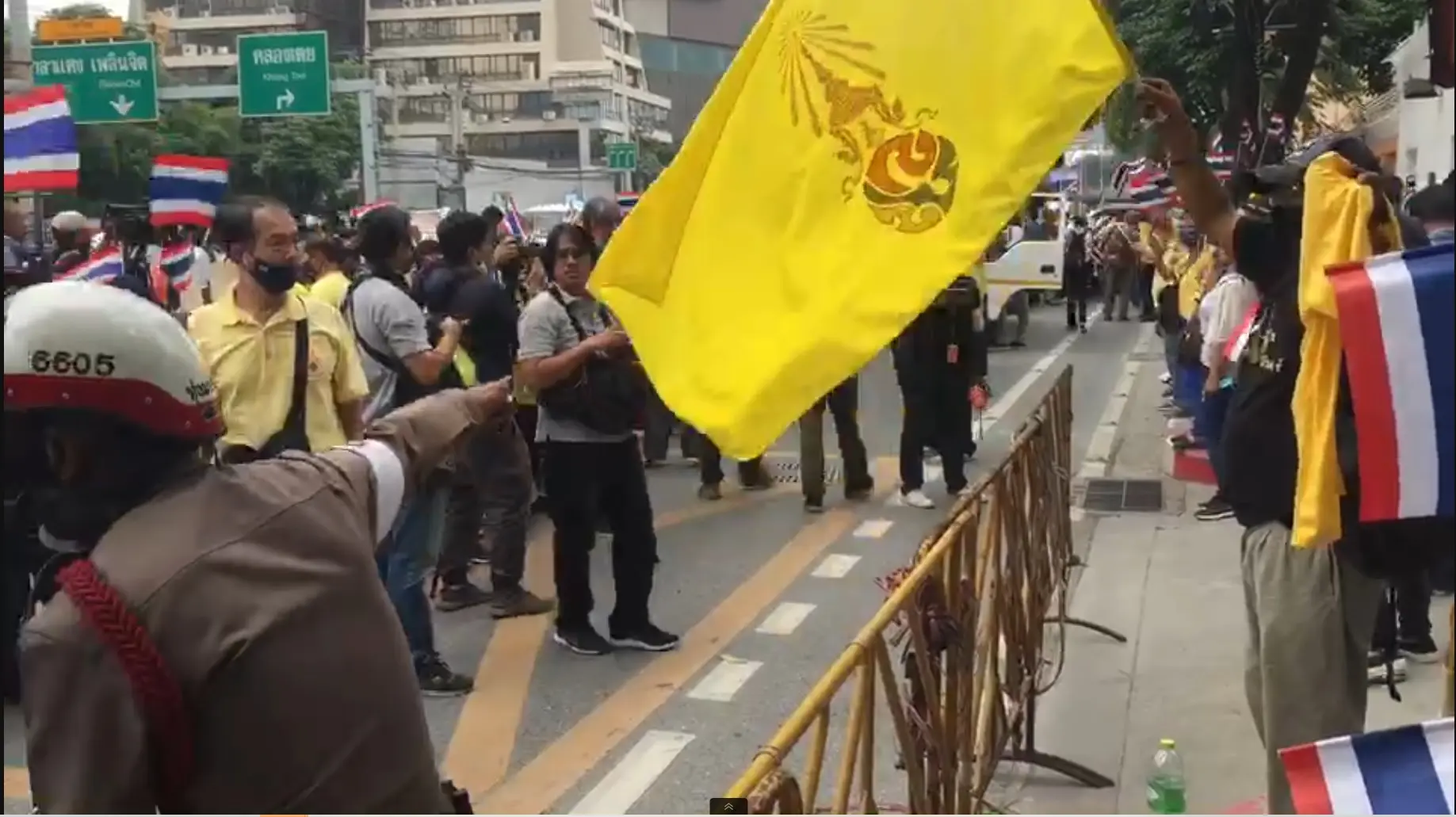 นายนิติธร ล้ำเหลือ หรือ ทนายนกเขา และนายพิชิต ไชยมงคลจากกลุ่มประชาชนคนไทย และมวลชนคนรักสถาบัน ที่ร่วมกันใส่เสื้อเหลือง ได้เดินทางมาพร้อมกับรถขยายเสียงและนัดรวมตัวกันบริเวณหน้าสถานทูตเยอรมนีในวันนี้(26ต.ค.63)เมื่อเวลา 13.05 น. โดยมีเจ้าหน้าที่ตำรวจตระเวนชายแดนมาคอยดูแลความปลอดภัย ซึ่งในระหว่างนั้นมีรายงานว่ามีชายที่เสื้อเหลืองชู 3 นิ้วเพื่อมาป่วนด้วย แต่ไม่ได้มีเหตุรุนแรงแต่อย่างใด