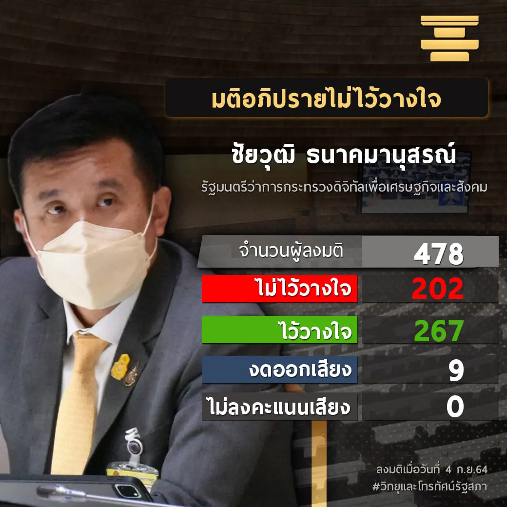 ได้คะแนนไว้วางใจ 267 ต่อ 202 งดออกเสียง 9 เสียง