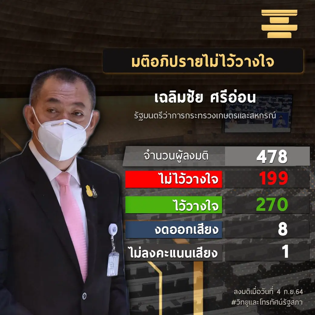 ได้คะแนนไว้วางใจ 269 ต่อ 195 งดออกเสียง 10 ไม่ลงคะแนน 1 เสียง