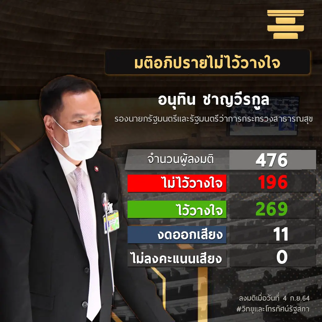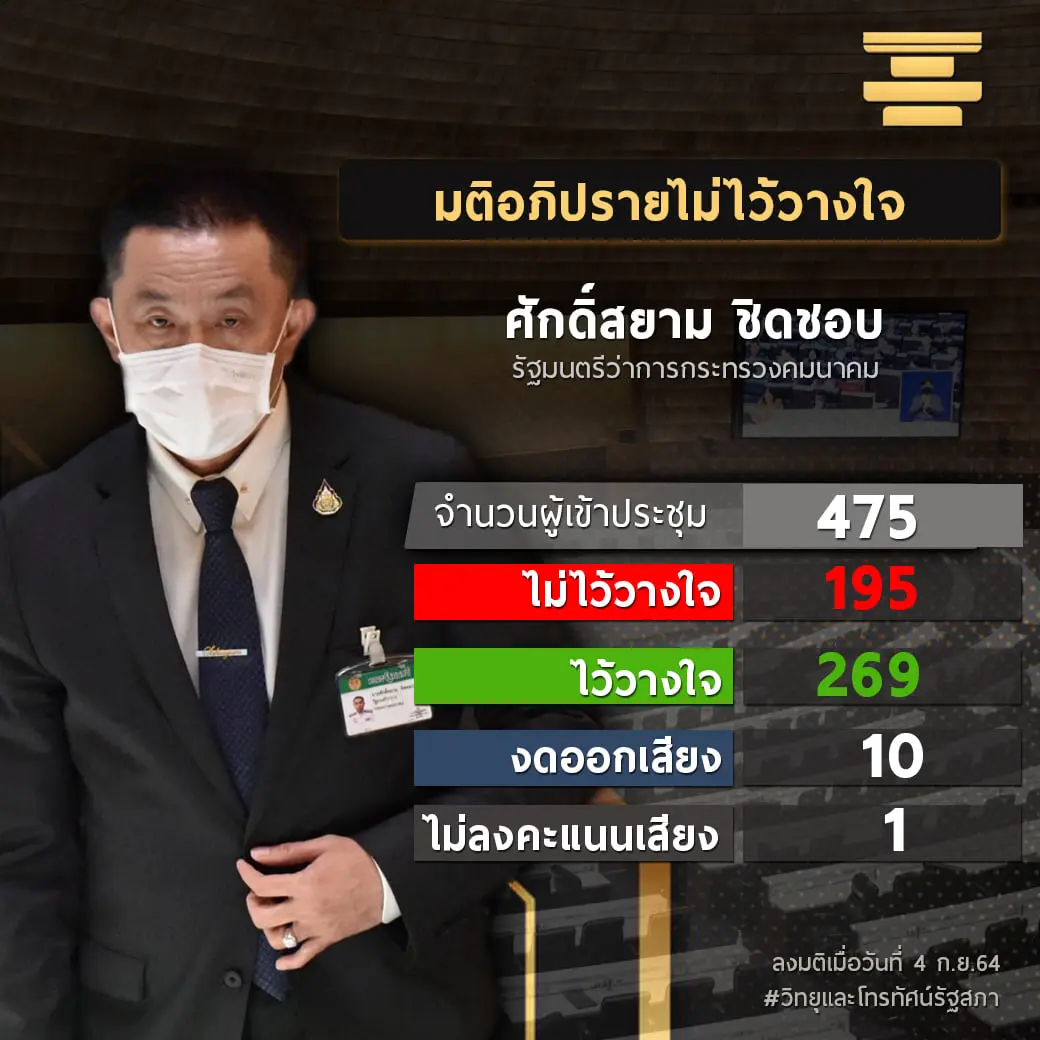 ได้คะแนนไว้วางใจ 269 ต่อ 196 งดออกเสียง 11 เสียง