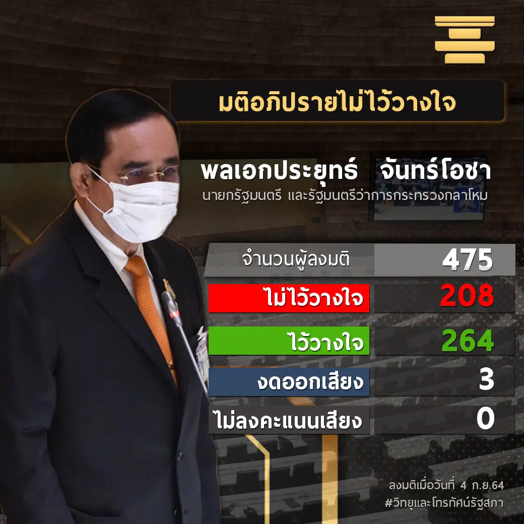 ได้คะแนนไว้วางใจ 263 ต่อ 201 งดออกเสียง 10 ไม่ลงคะแนน 1 เสียง
